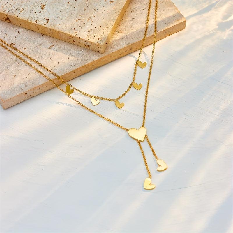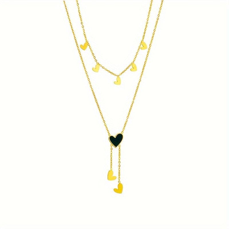 Elevate your look with this trendy double layer choker necklace featuring a heart pendant. Perfect for daily wear or party outfits. Tassel detail adds a touch of sophistication.