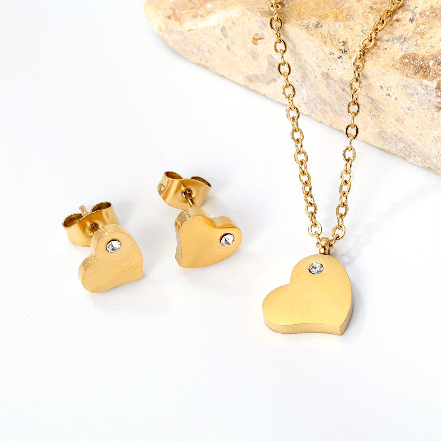 Elegant and stylish French style jewelry set crafted from 316 stainless steel with synthetic diamonds, plated with 18K gold. Hypoallergenic and perfect for daily wear.