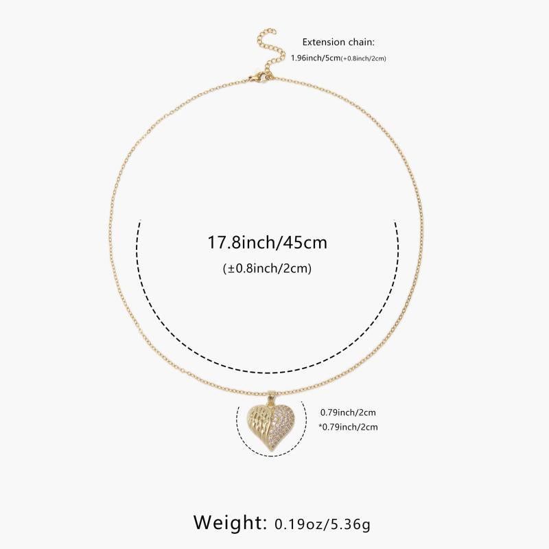 Add a touch of elegance to your outfit with this heart pendant necklace featuring zirconia stones. The necklace is plated with 18K gold for a luxurious look.