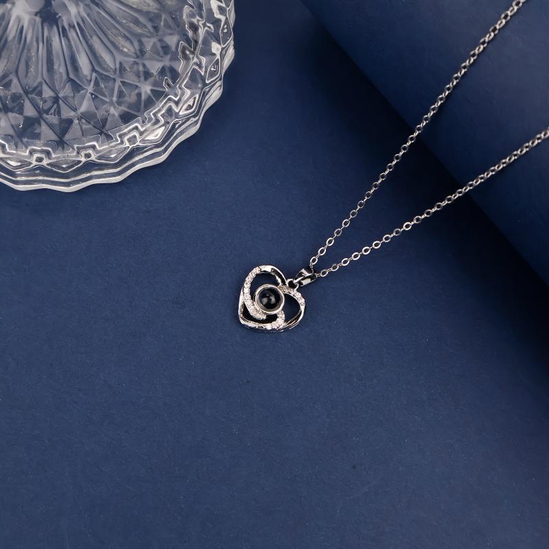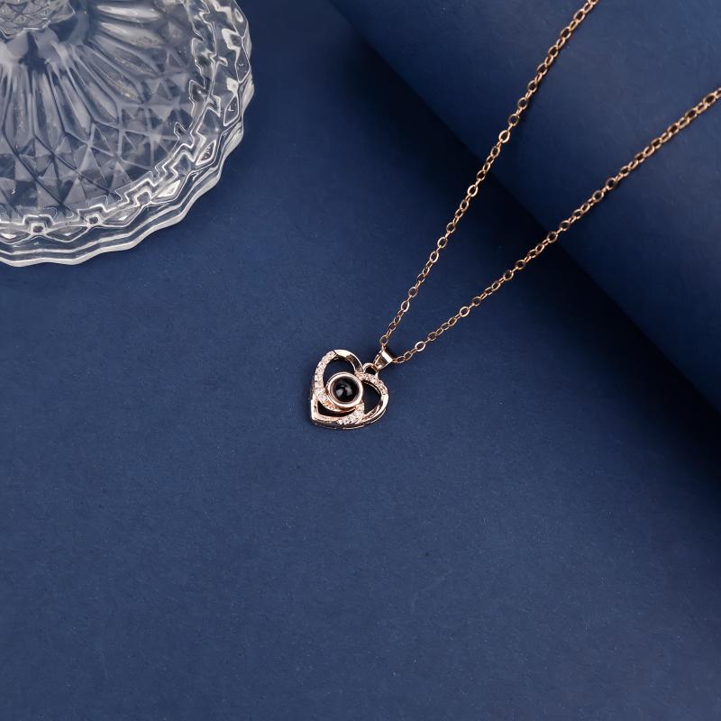 Elegant heart-shaped pendant necklace with synthetic zirconia stones set in a copper heart. Perfect for weddings and special occasions.