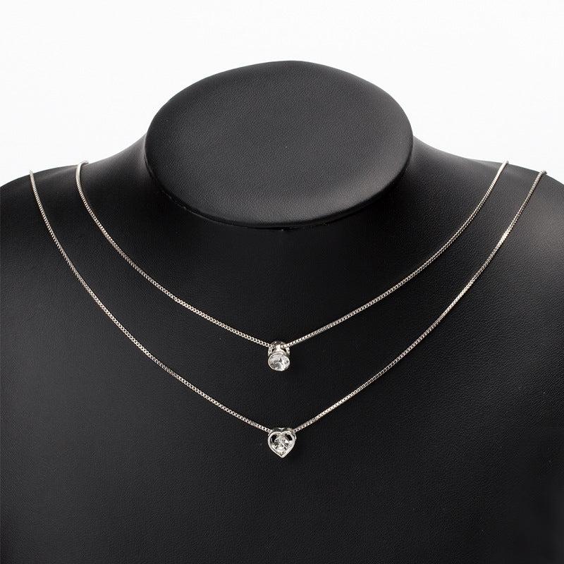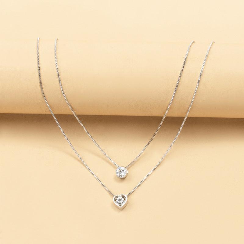 Elegant double layer necklace featuring a heart-shaped pendant with round cut glitter zirconia. This stunning piece is perfect for adding a touch of sparkle to any outfit.