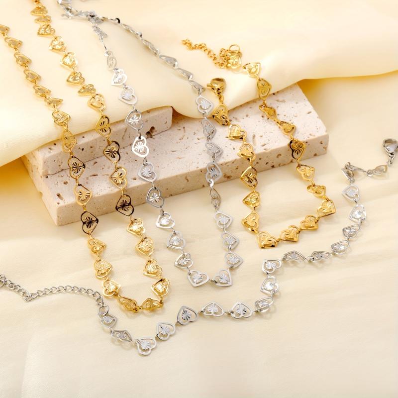This elegant set includes a heart-shaped necklace and bracelet, perfect for banquets, weddings, parties, and daily wear. Made of high-quality stainless steel, this set is suitable for any occasion.