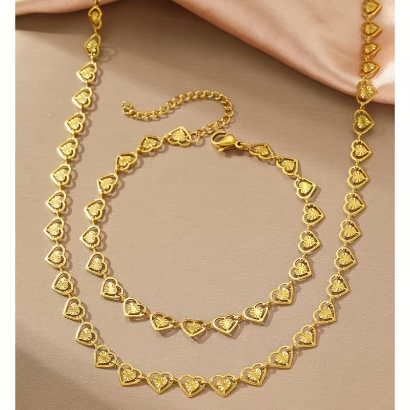 This set includes a heart-themed stainless steel necklace and bracelet that are perfect for Valentine's parties. Light and stylish, they make a great gift for your loved one.