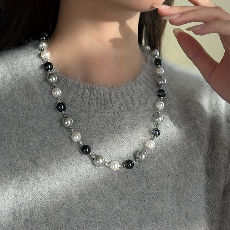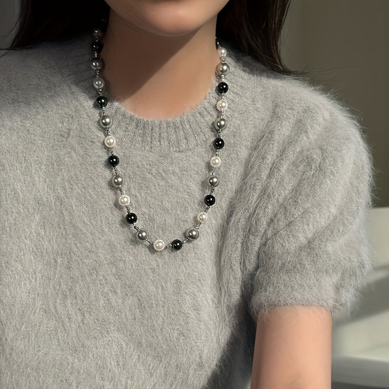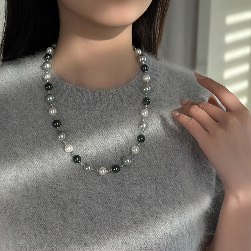 Elevate your style with this exquisite gray mixed shell pearl necklace, perfect for autumn and winter. Ideal for pairing with sweaters.