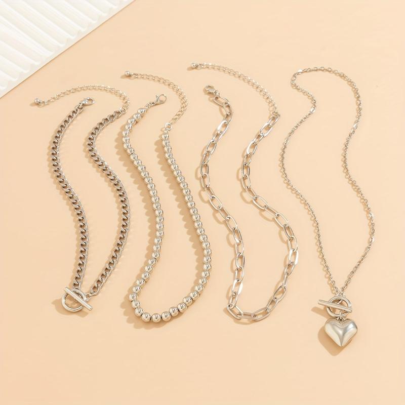 This set includes 4 stylish hip hop beaded necklaces featuring a geometric design and an OT buckle. Perfect accessory to add a trendy touch to your outfit.