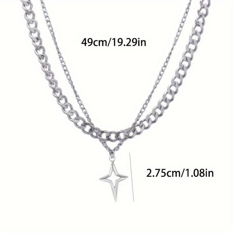 Get that urban hip hop look with this dual layered iron chain necklace featuring a star pendant. Unplated for a raw and edgy appeal.