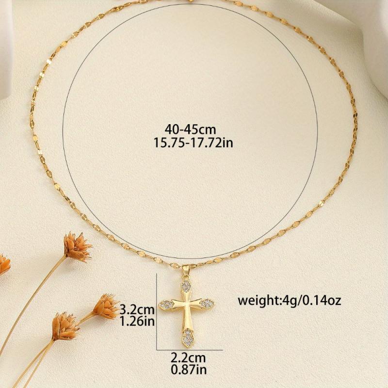 This trendy necklace features an August birthstone synthetic cross pendant on a golden tone chain. Ideal for banquets, parties, and year-round gifting.