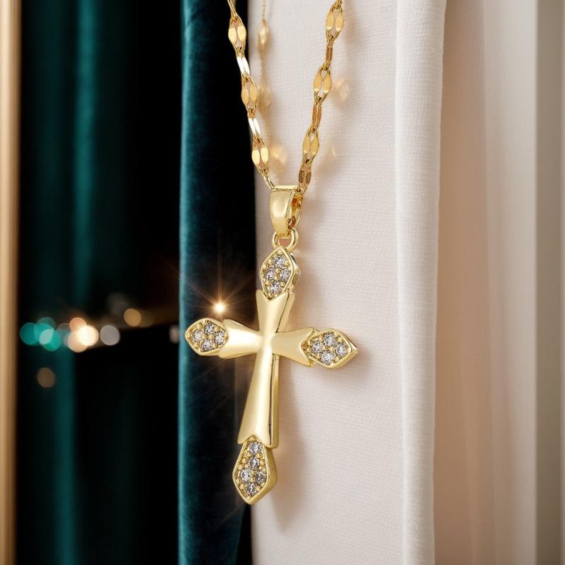 Hip Hop Style Synthetic Cross Pendant Necklace for Women