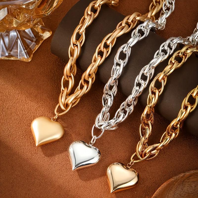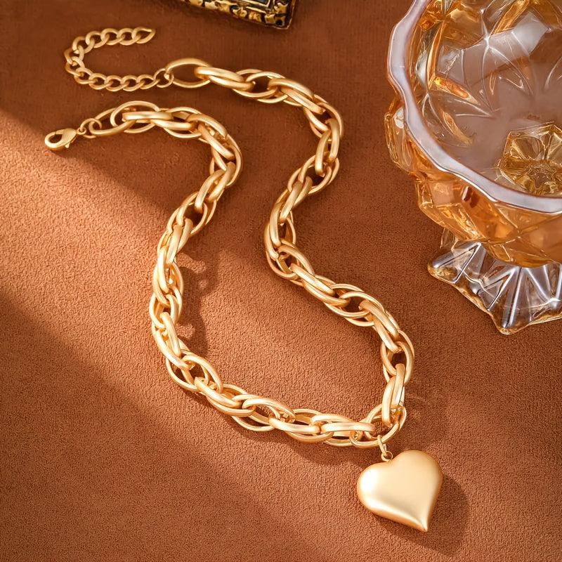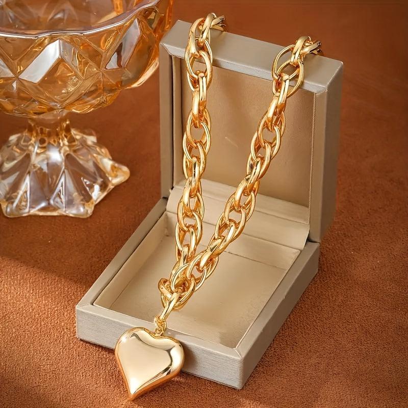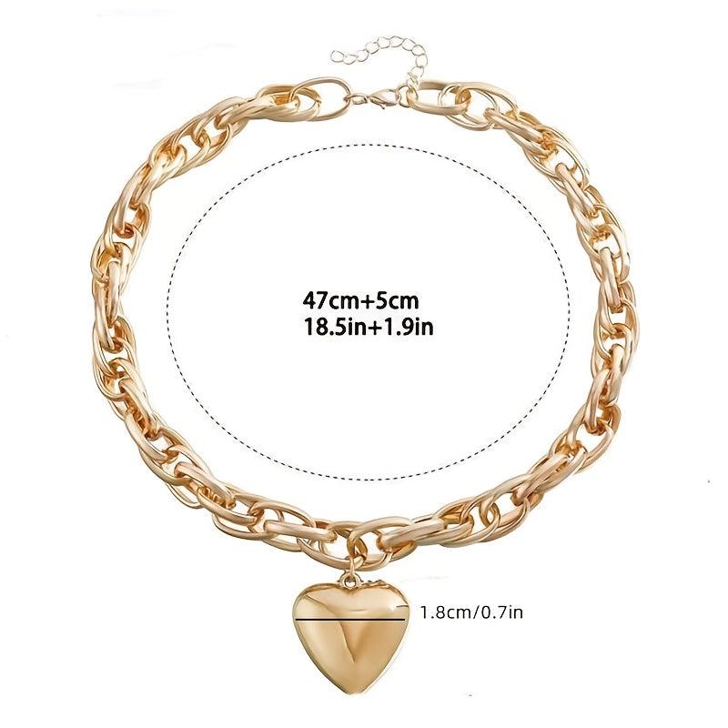 This sexy choker features a heart pendant with golden tone copper alloy and stainless steel links, ideal for parties and casual attire.