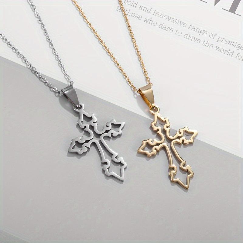 Elegant and stylish stainless steel cross pendant necklace perfect for parties and special occasions.