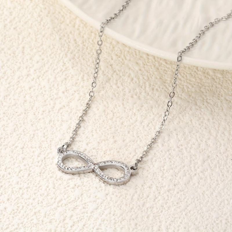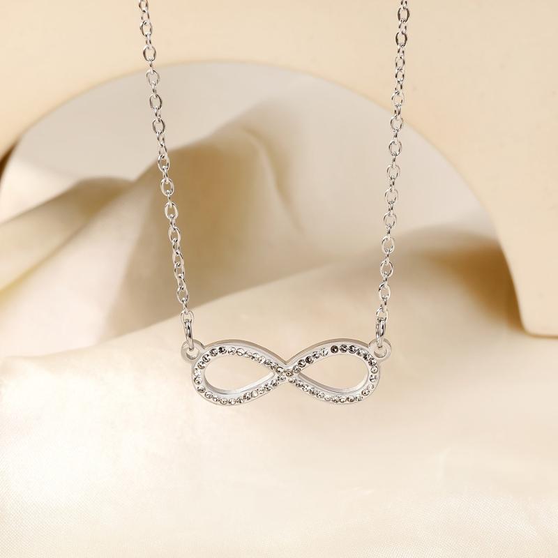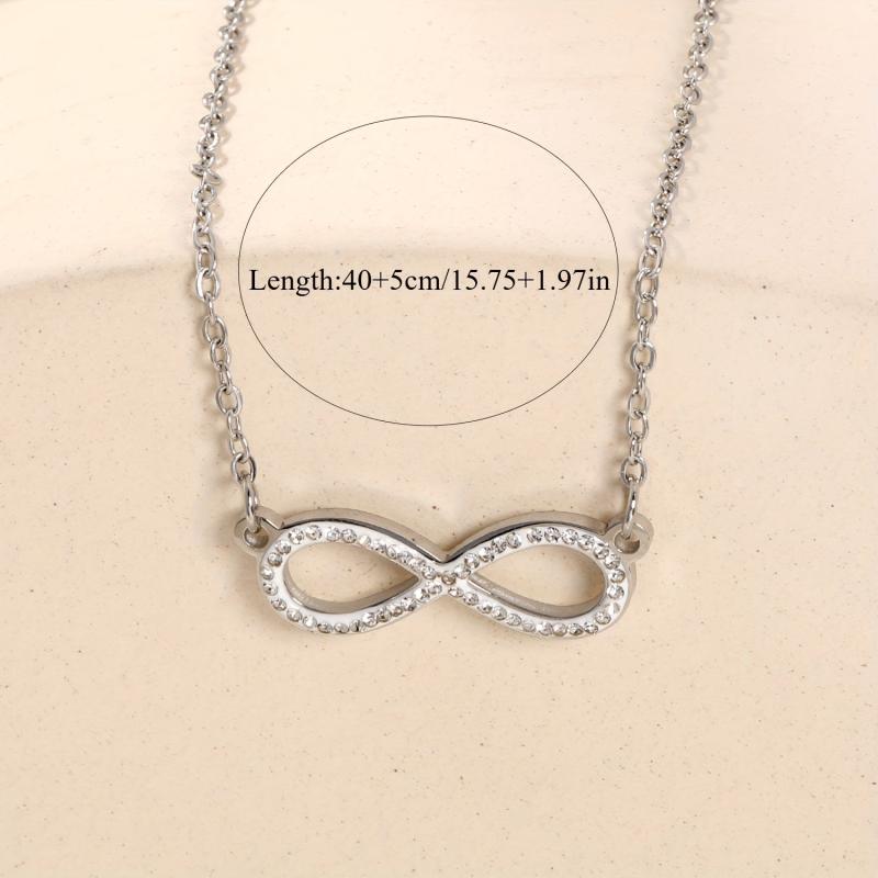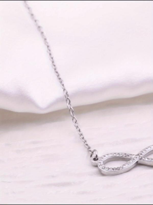 Elegant stainless steel infinity symbol necklace with sparkling gemstones, perfect for daily wear or formal occasions. A thoughtful Valentine's gift for her.