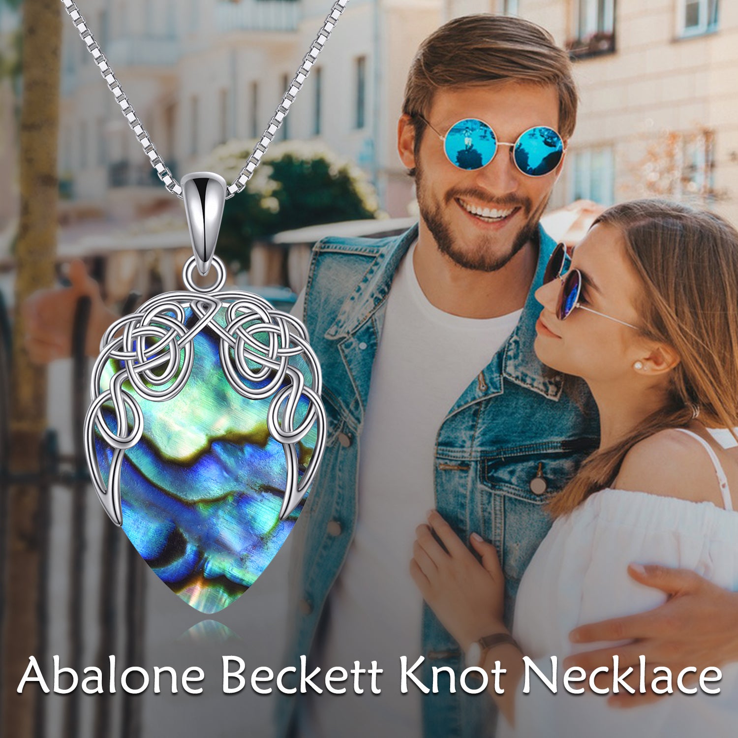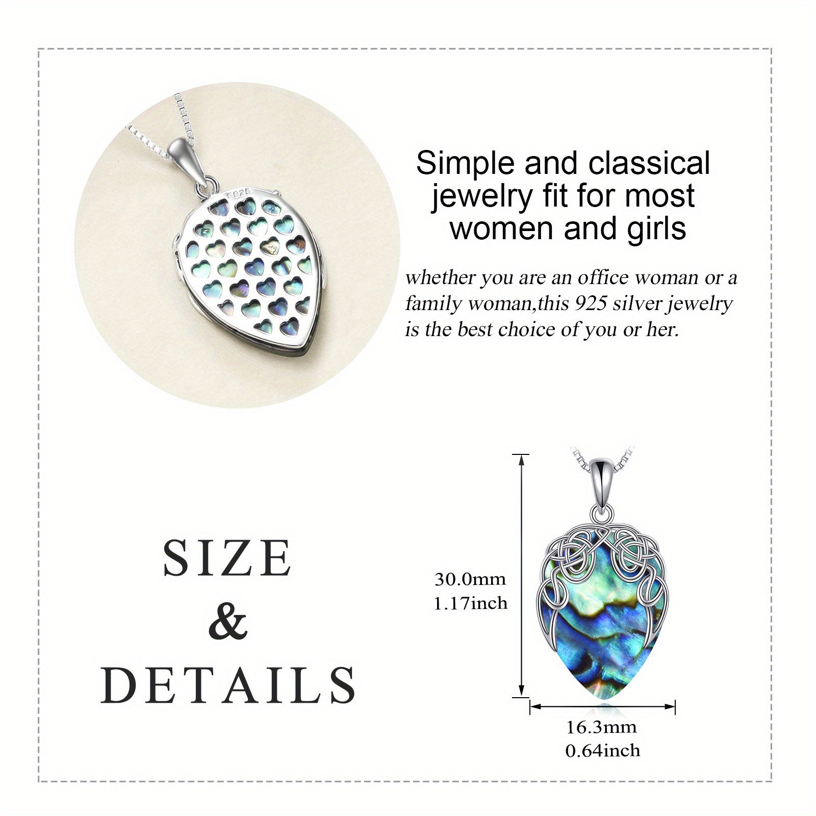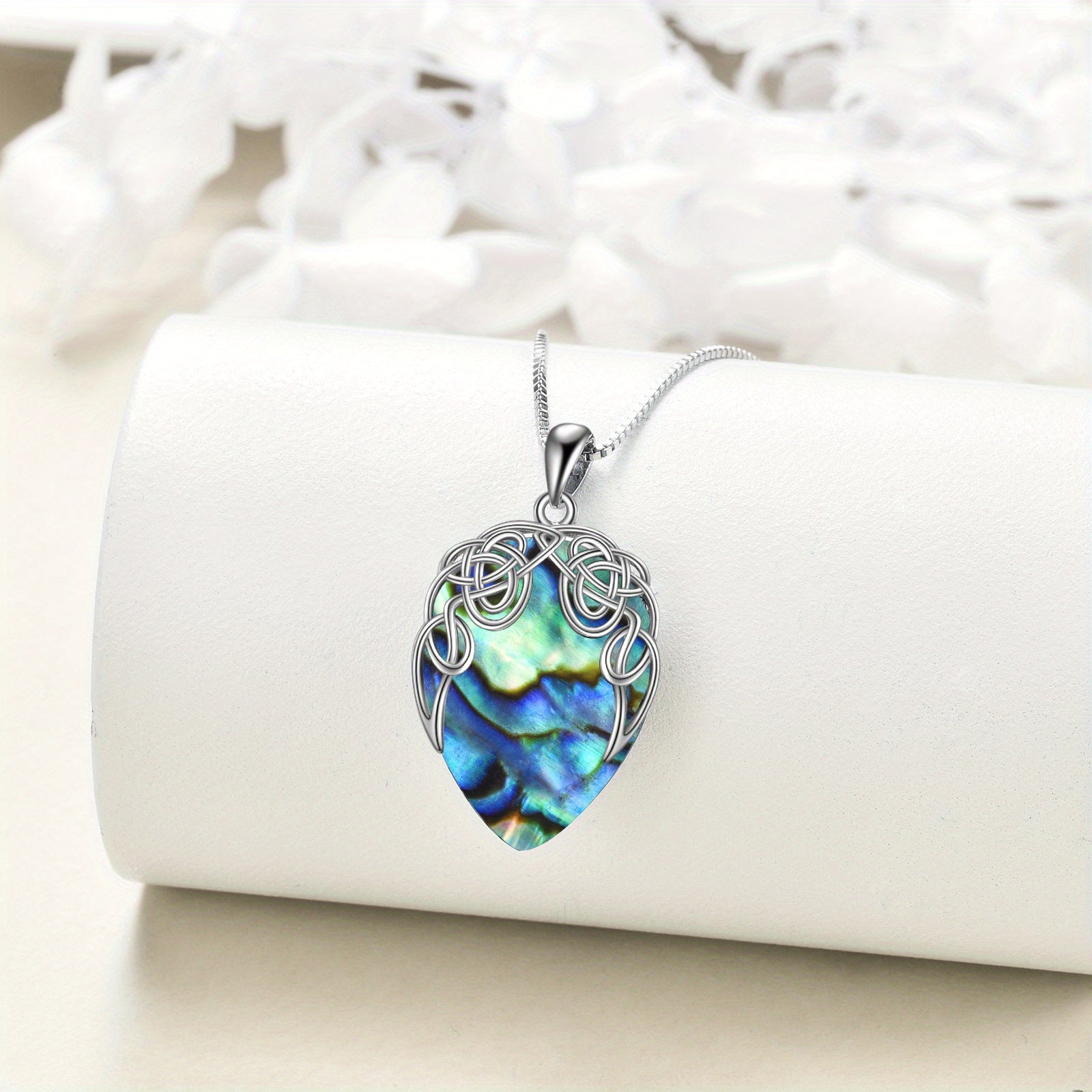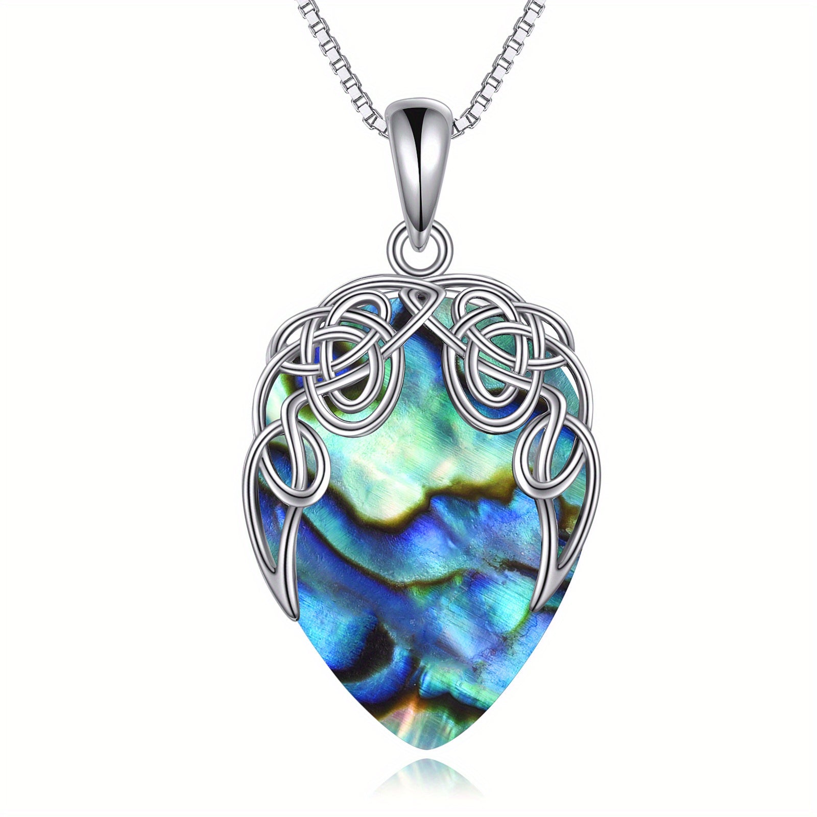 This stunning sterling silver necklace features an Irish Celtic knot teardrop pendant with vibrant abalone shell. A perfect piece of jewellery for women and girls.