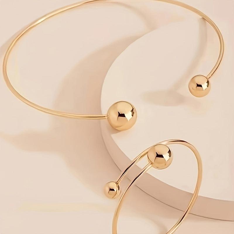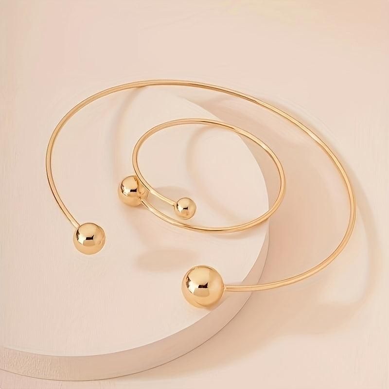 This set includes a versatile iron ball end open cuff bracelet and a sexy choker necklace for women to wear daily or on vacation all year round.