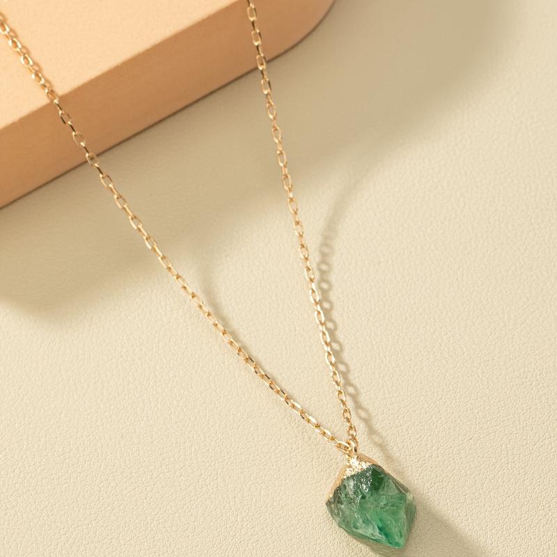 Enhance your style with this stunning irregular crystal stone pendant necklace. It features a 14k plated chain that adds a touch of elegance to any outfit.