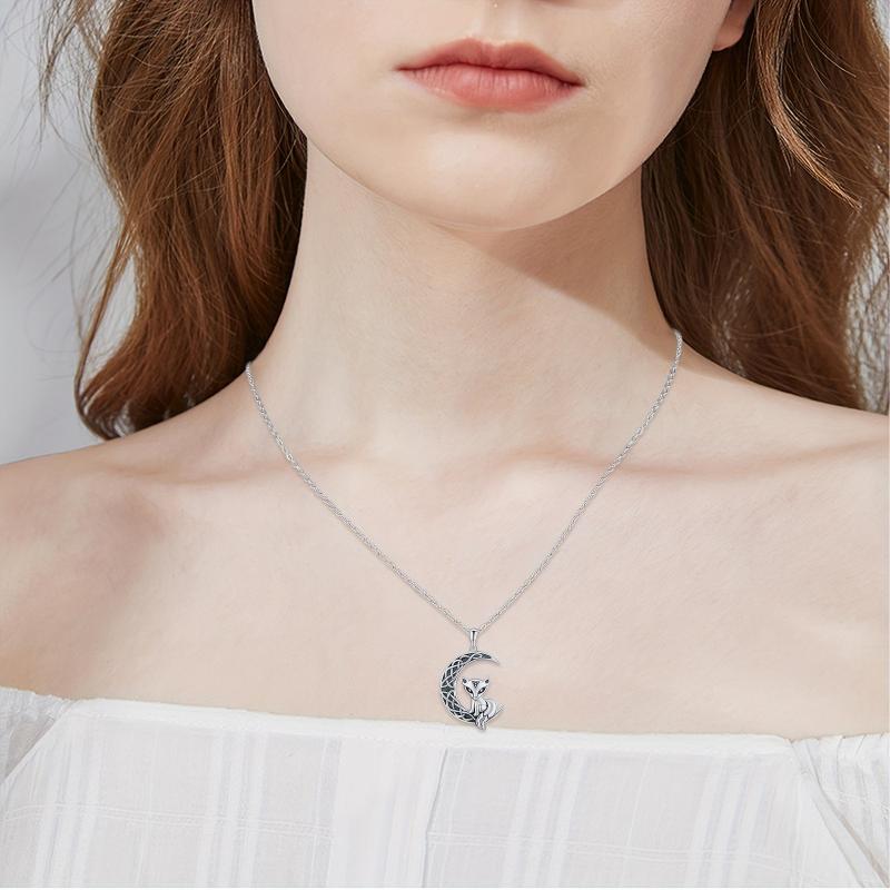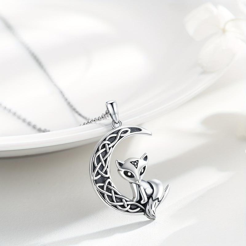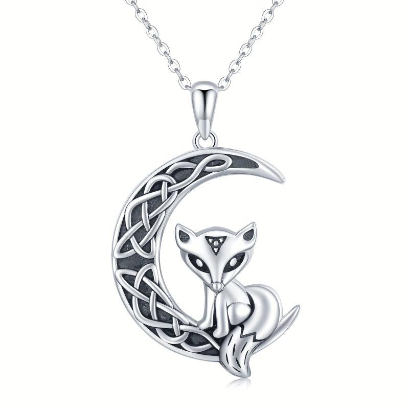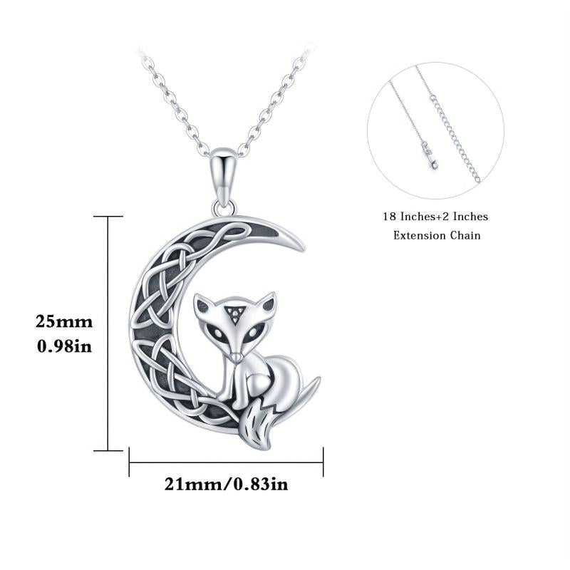 Embrace the mystical allure with this Keltic Moon Necklace featuring a sterling silver fox pendant intertwined with a crescent moon design. The intricate craftsmanship and elegant design make it a unique piece of moon jewelry.
