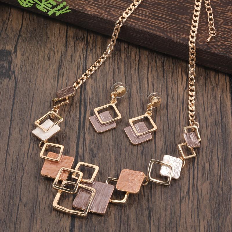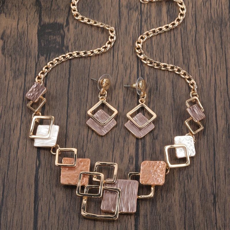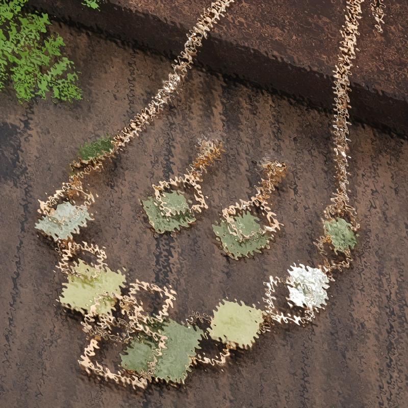 Elegant and casual jewelry set featuring a necklace and earrings with minimalist khaki enamel coating.