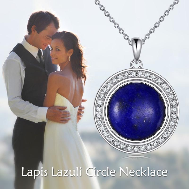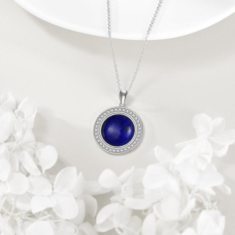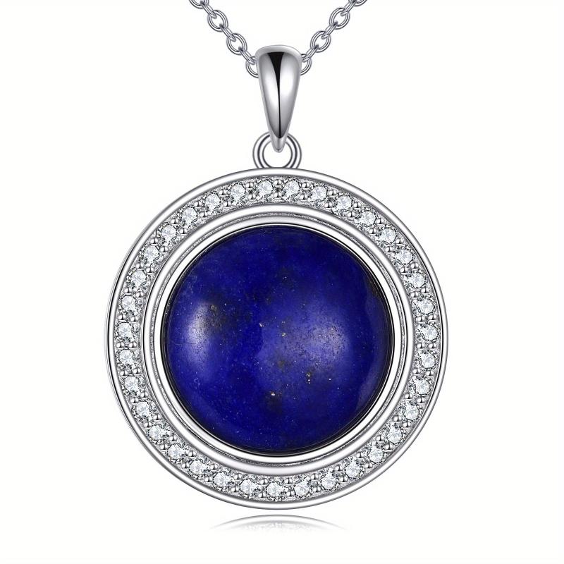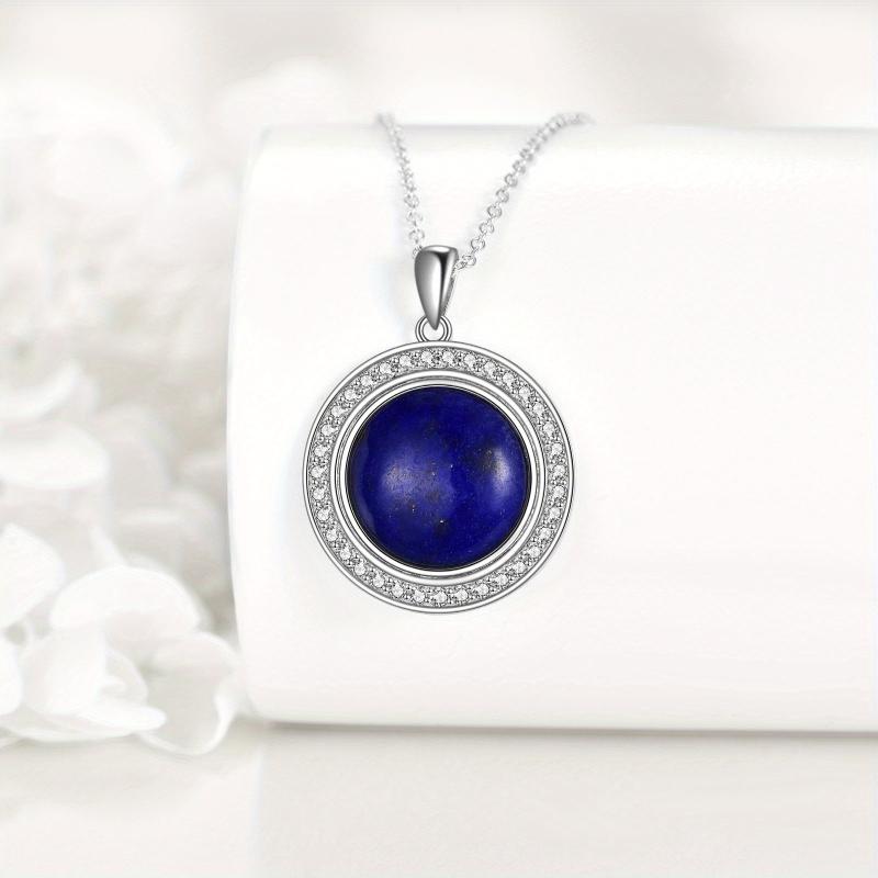 Enhance your style with this stunning Lapis Lazuli necklace featuring a round pendant with cubic zirconia accents, crafted in 925 sterling silver.