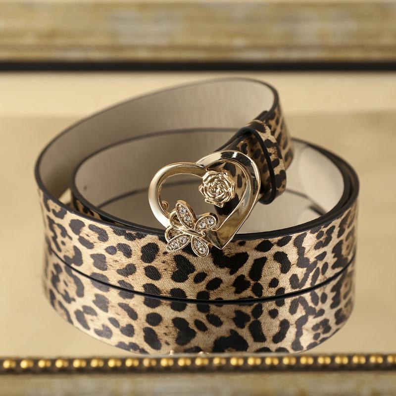 Add a touch of wild style to your outfits with this leopard print faux leather belt featuring a heart-shaped metal buckle. Perfect for casual weekend wear or a night out on the town.