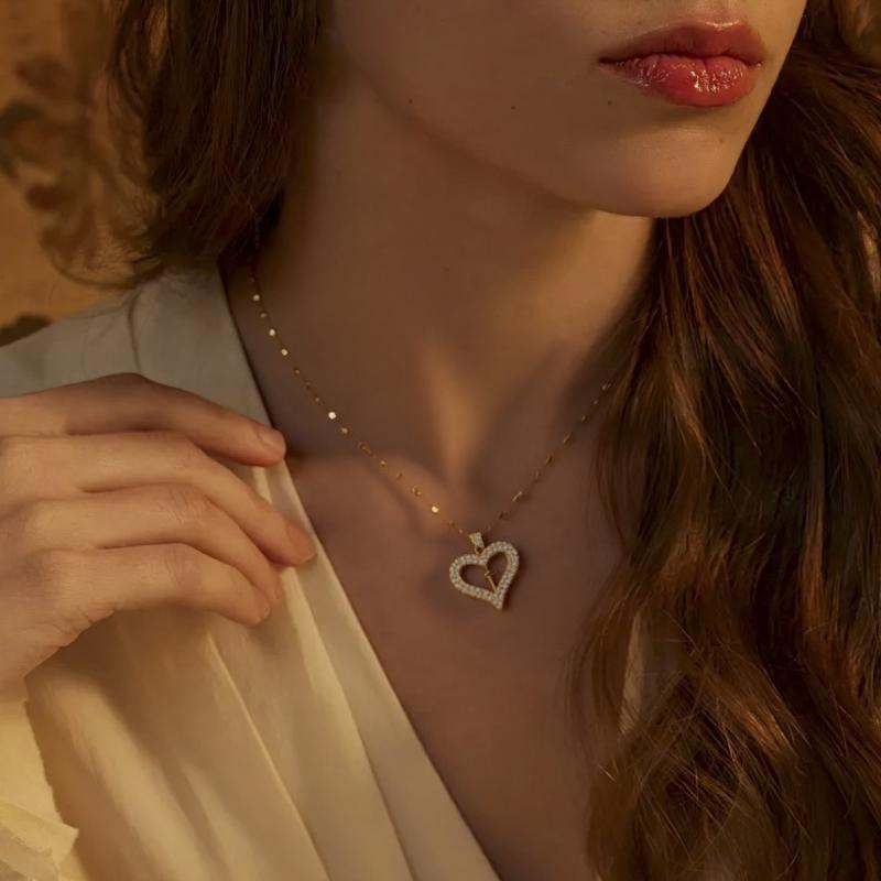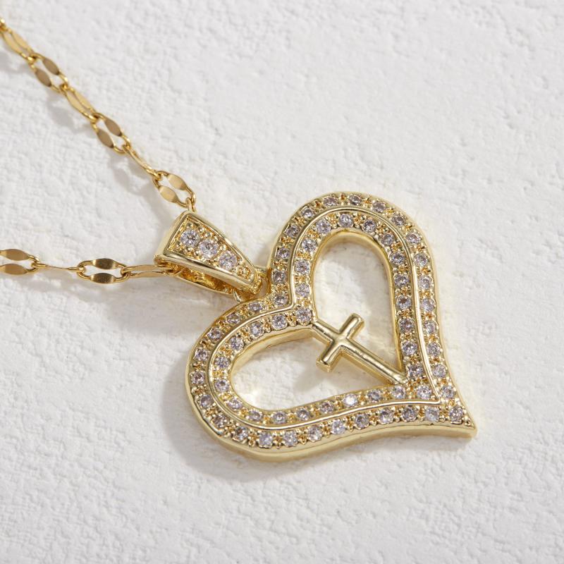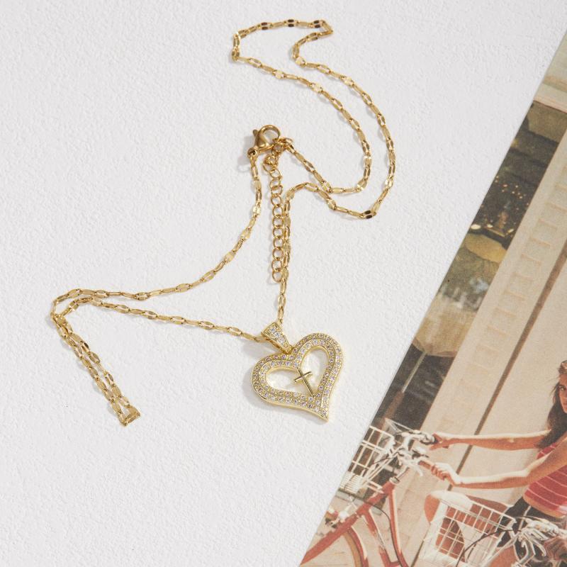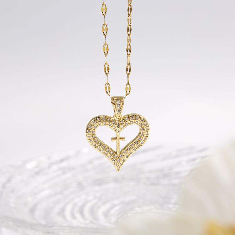 This elegant necklace features a heart cross pendant with a synthetic stone, crafted from high-quality stainless steel. Perfect for adding a touch of spirituality and style to your outfit.