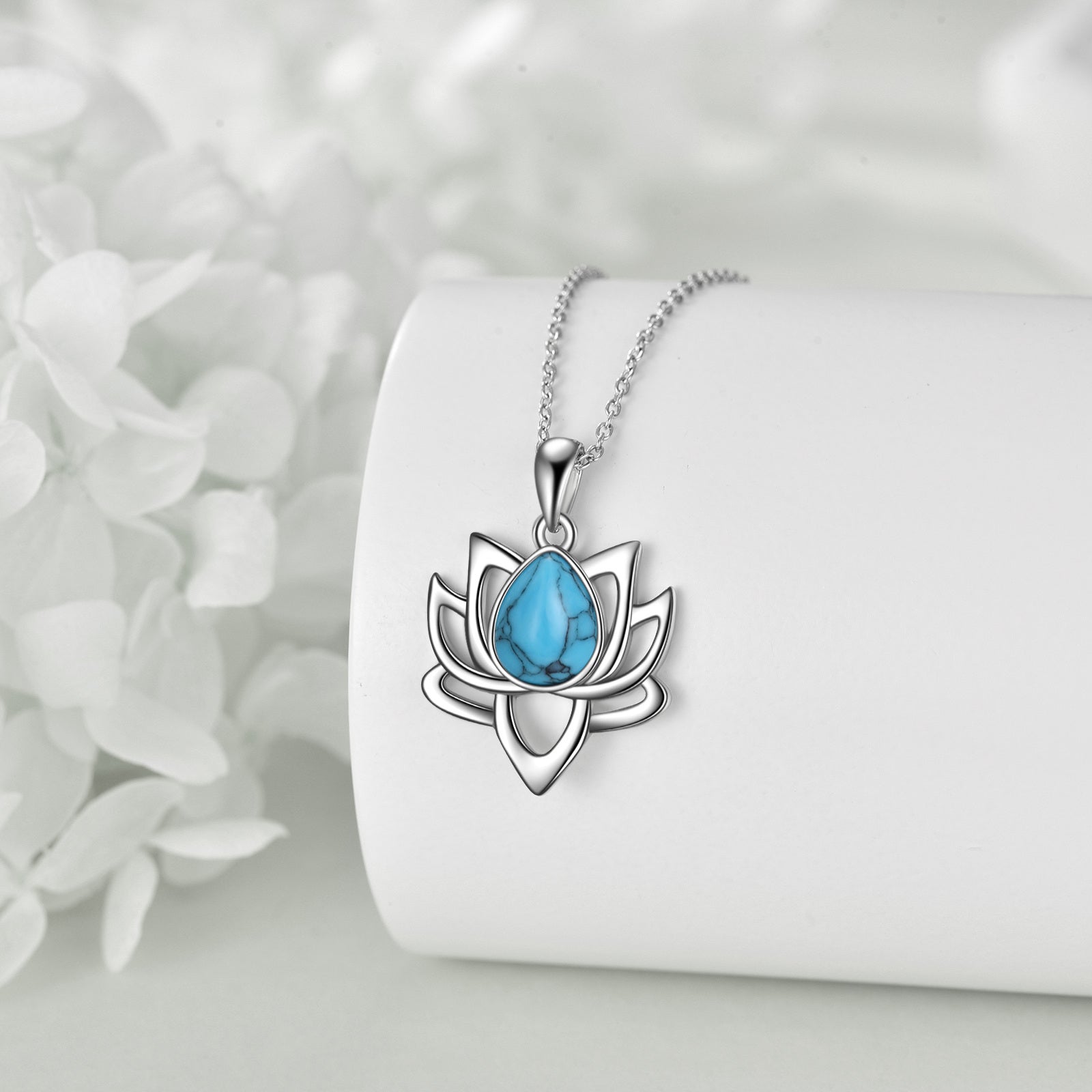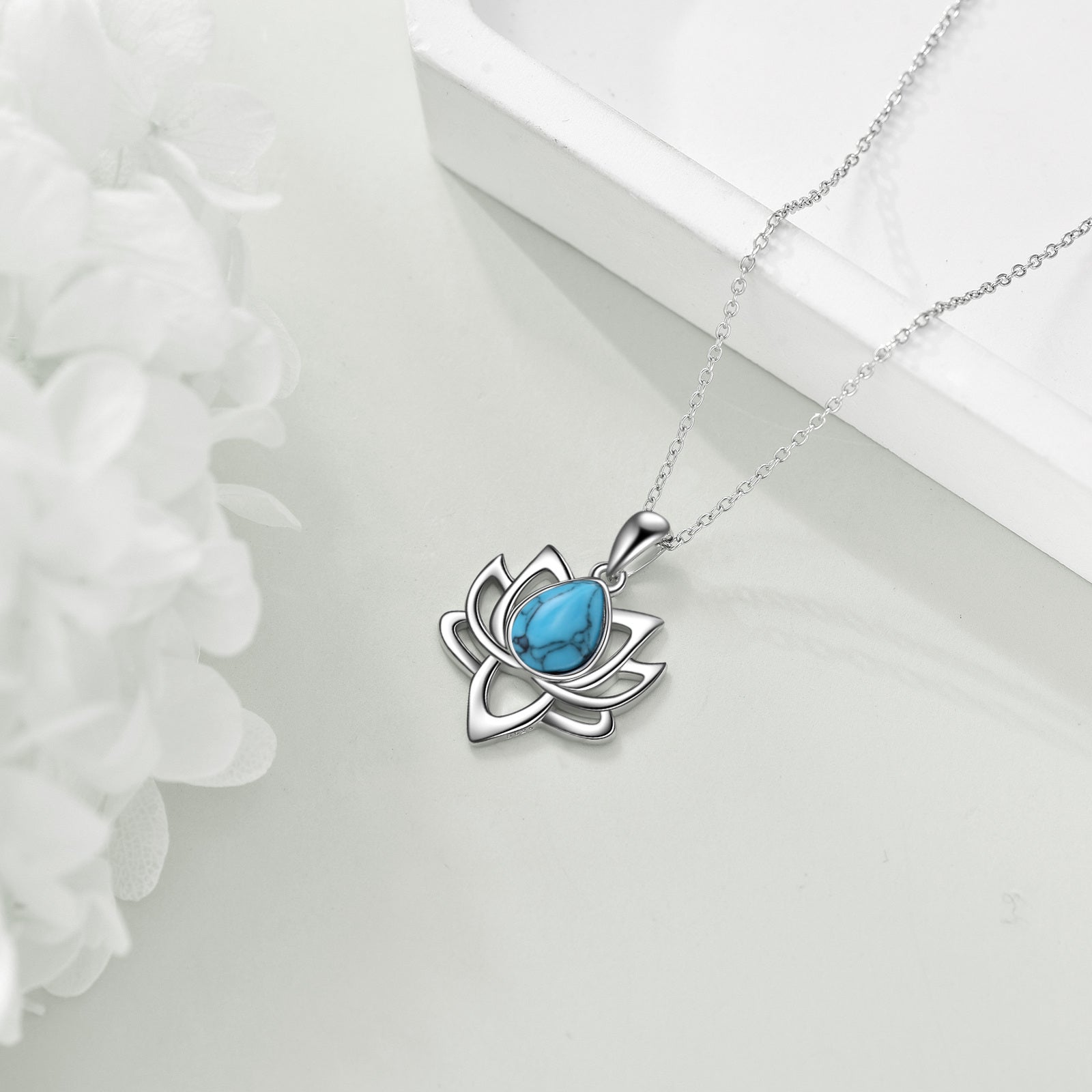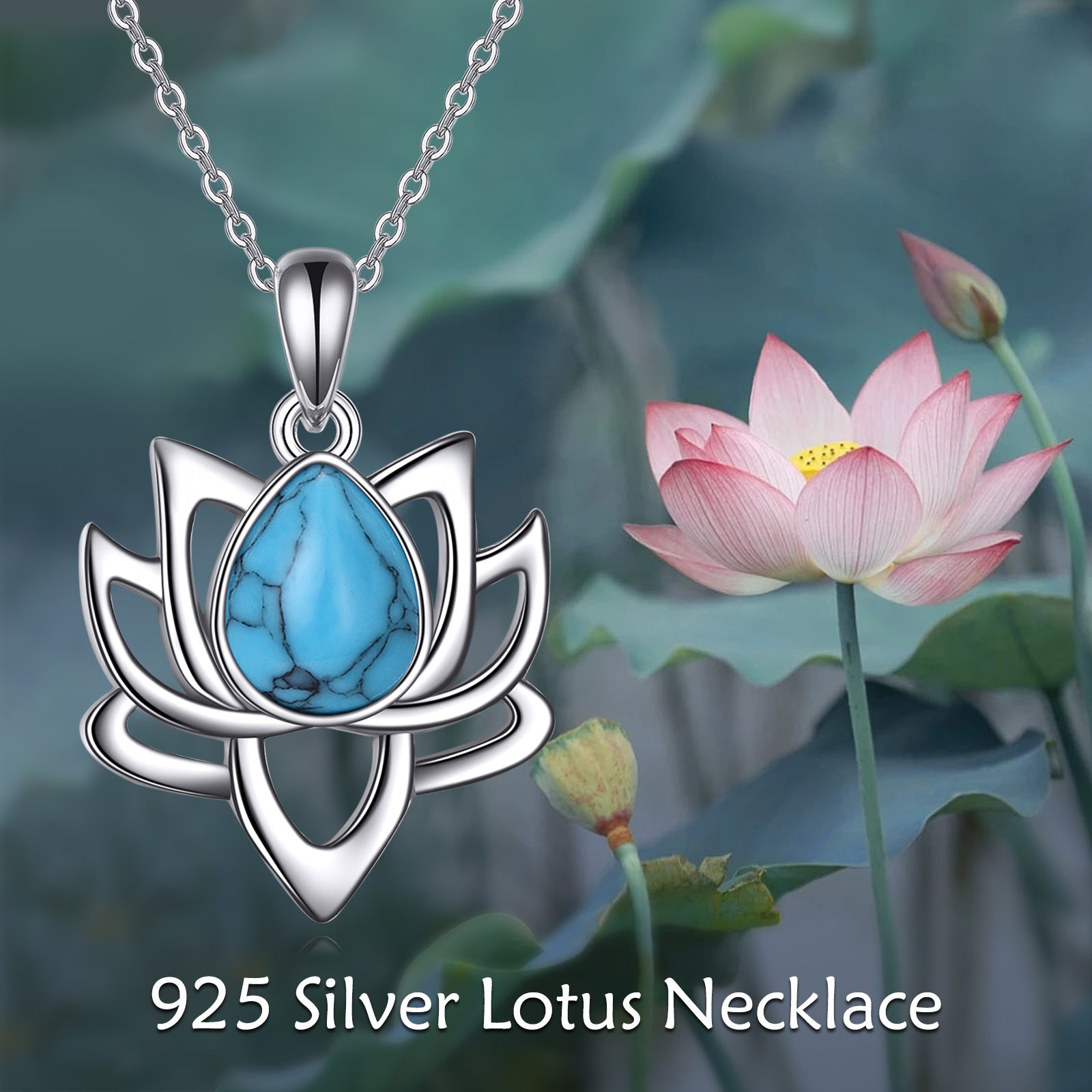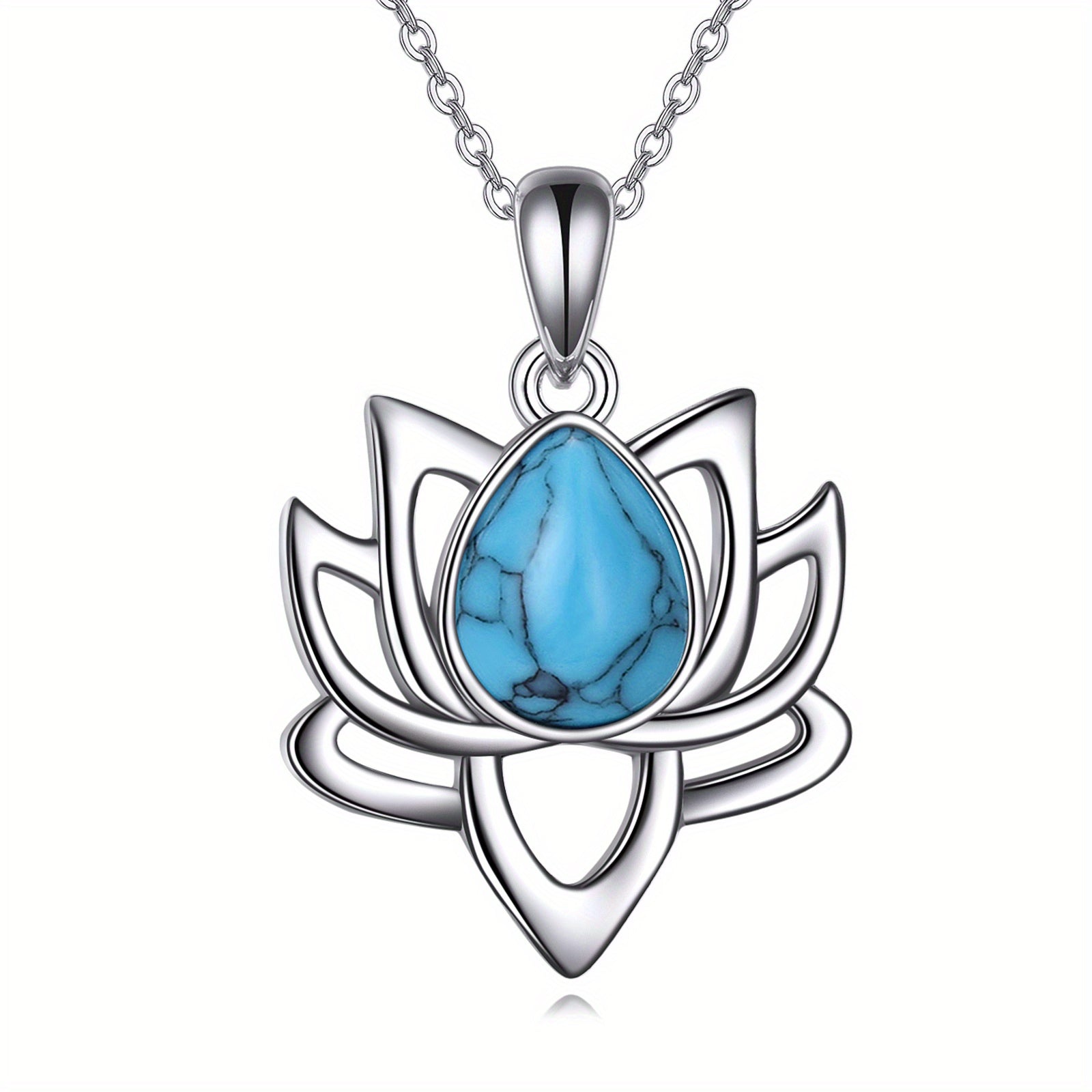 Lotus Necklace 925 Silver Turquoise Flower Necklace Gift
