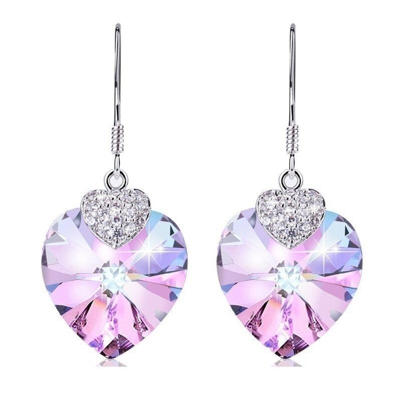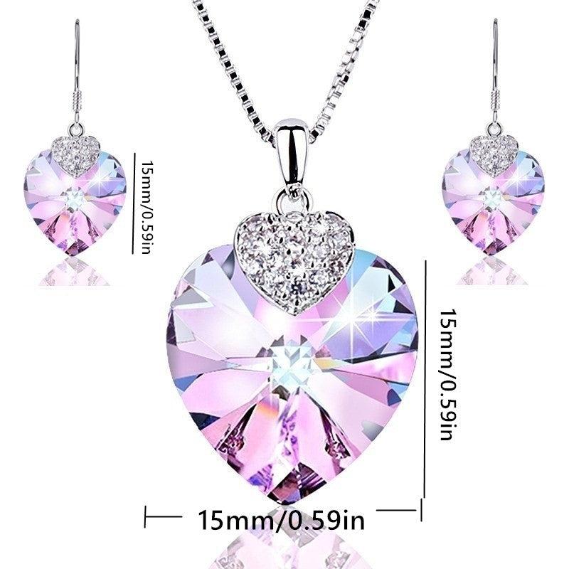 This stunning jewelry set includes a love heart crystal pendant necklace and matching dangle earrings. Perfect for bridal, engagement, or wedding occasions, this set makes a thoughtful and elegant gift for someone special.