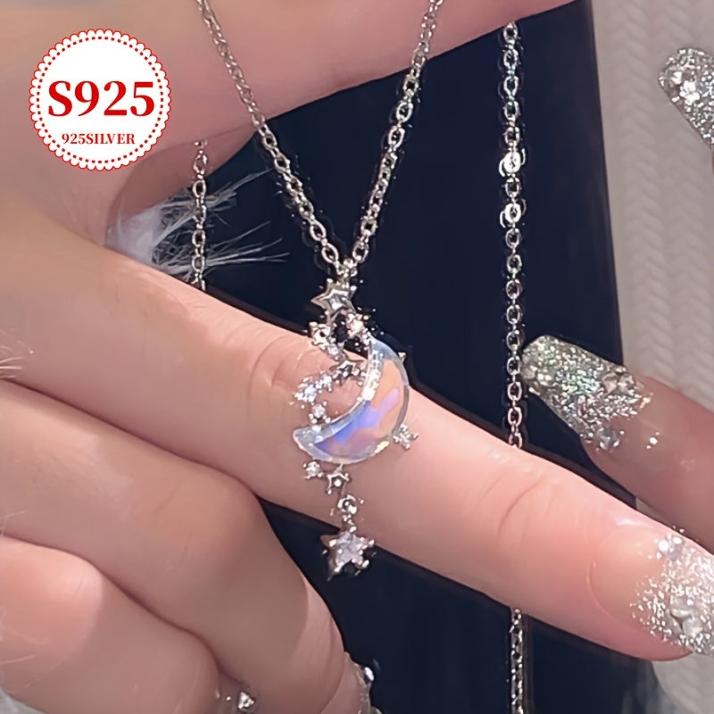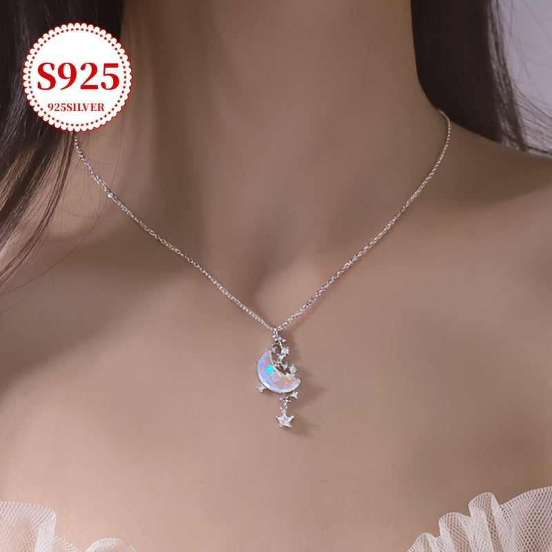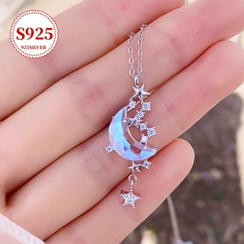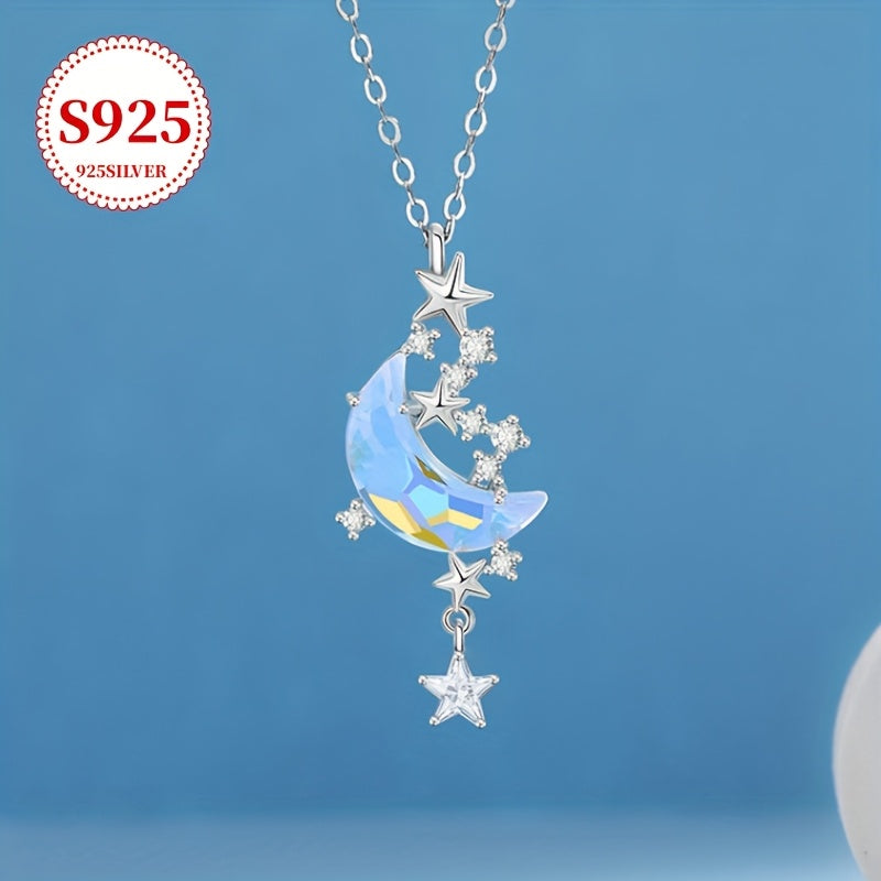 This light magic niche moon pendant necklace is perfect for women with sensitive skin. It features a galaxy-inspired design with stars and moons, making it a unique accessory.