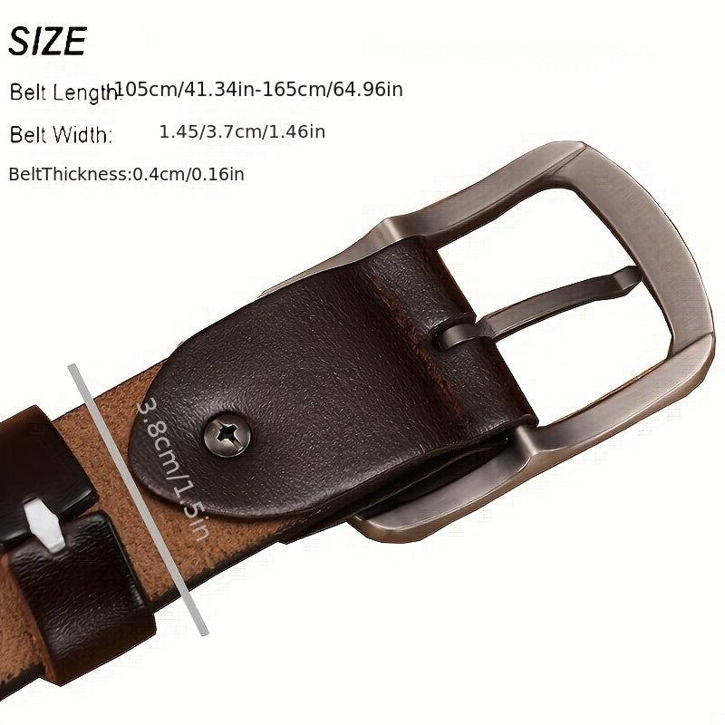 This cowhide leather belt for men features a classic pin buckle design, perfect for everyday wear.
