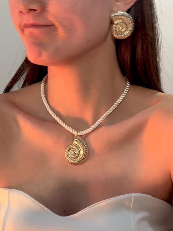 Elegant and unique set of earrings and necklace featuring a stylish metal snail pendant. Perfect for dance parties or gatherings.