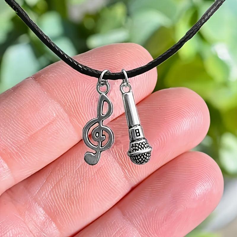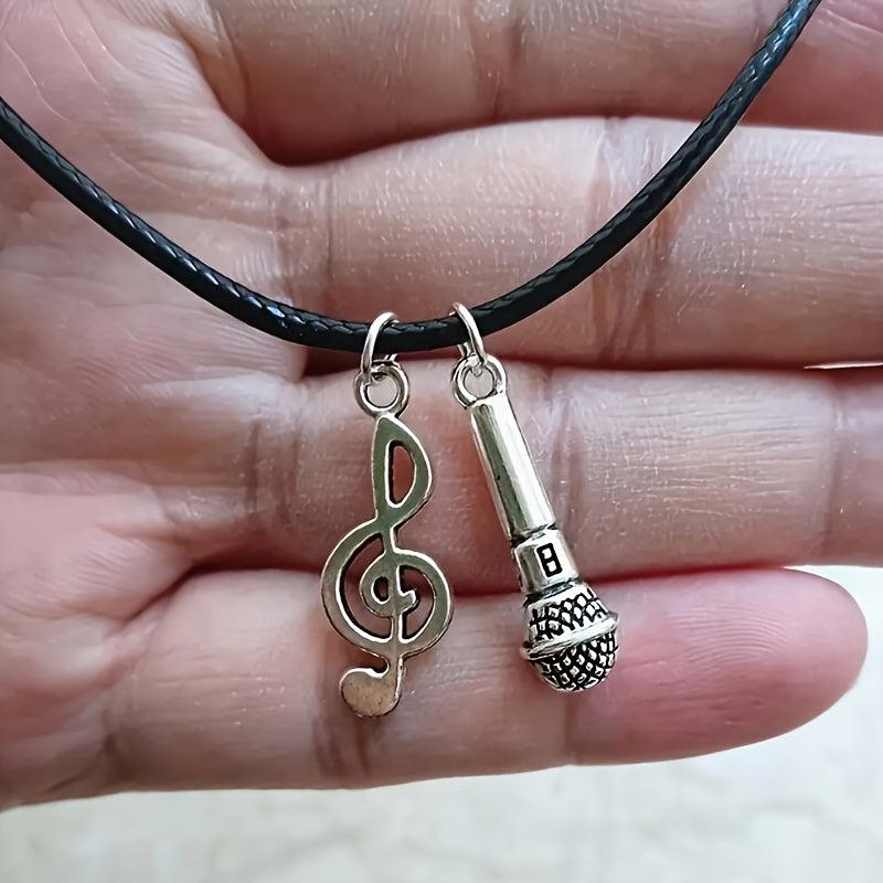 Get into the hip hop retro style with this unisex pendant necklace featuring a microphone and music note. Perfect for music parties and daily wear.
