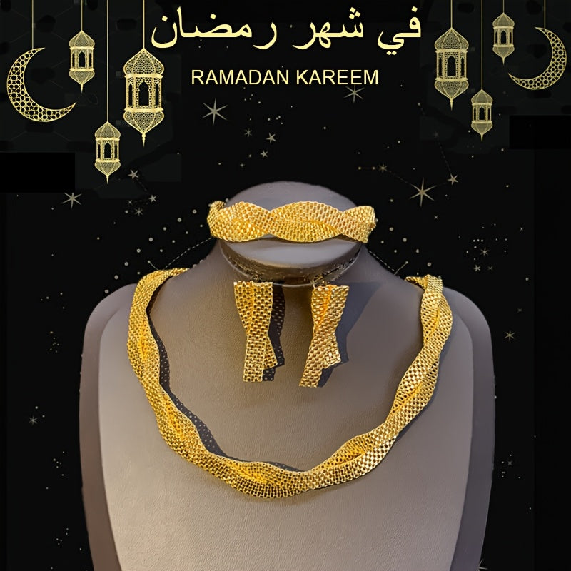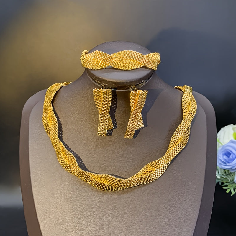 A stylish gift set featuring unique cross earrings, necklace, and bracelet. Perfect for everyday wear with timeless appeal.