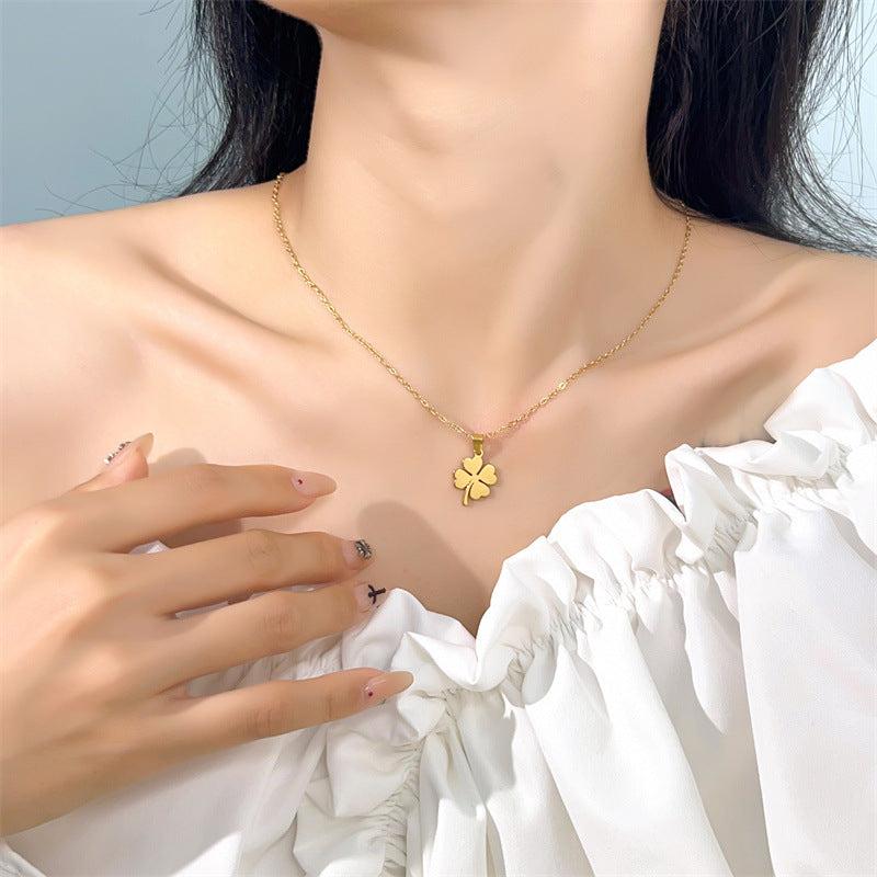 This stainless steel necklace features a light and versatile design, suitable for men and women. The four leaf clover pendant adds a touch of luck to your look.