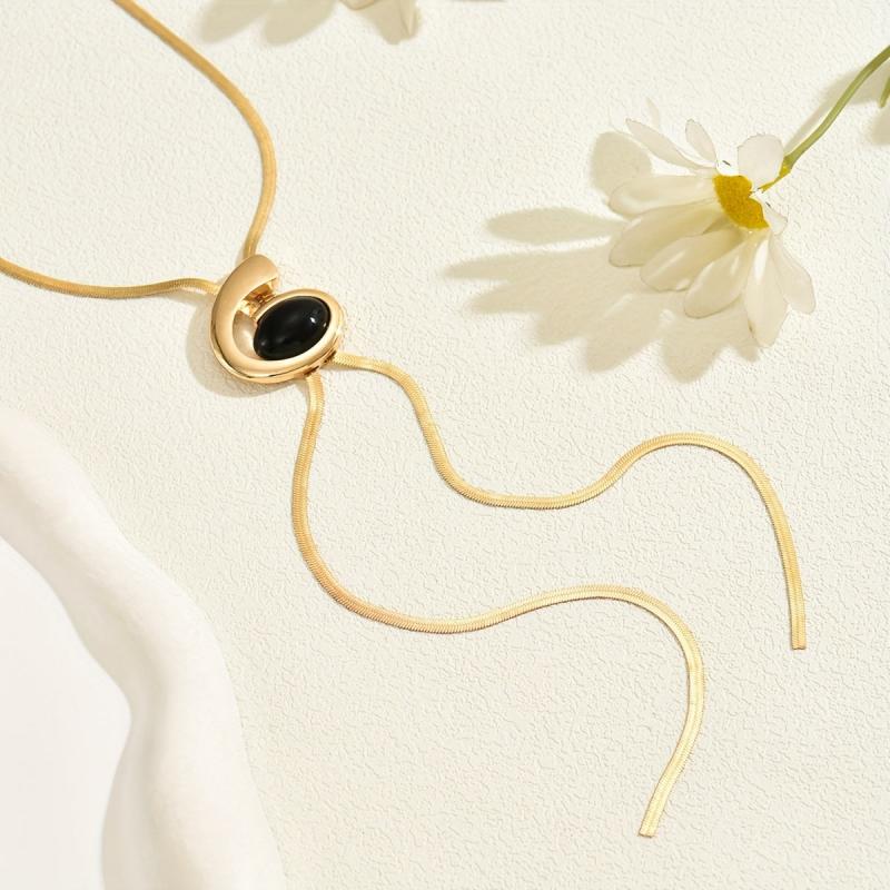 Elevate your style with this stylish and versatile snake chain necklace featuring a spiral snail shape. Perfect for any outfit.