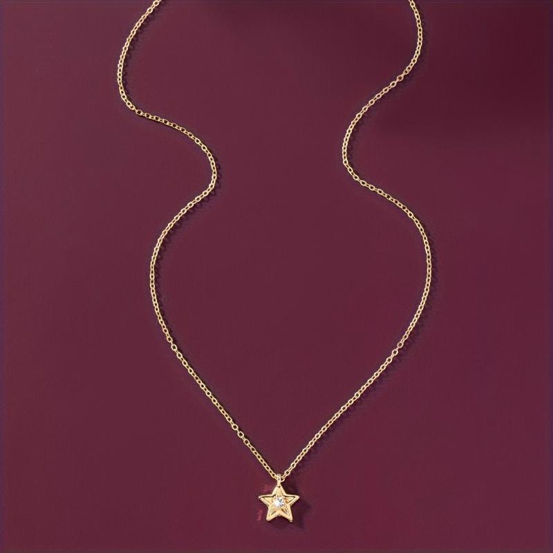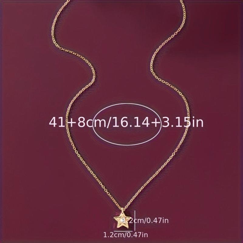 This women's necklace features a minimalist star pendant on a delicate golden tone chain. It's a versatile accessory suitable for everyday wear and vacation outfits.