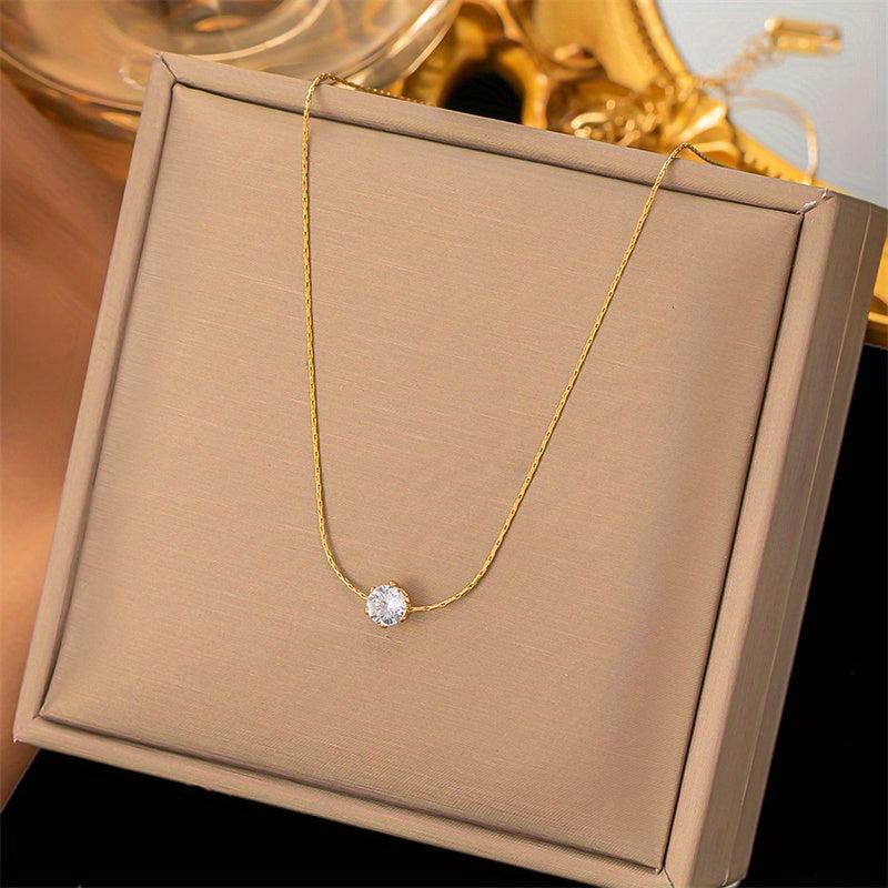 Elegant stainless steel necklace with transparent zirconia stones and a stylish golden tone finish. Perfect for daily wear, date nights, parties, and ideal for gifting.