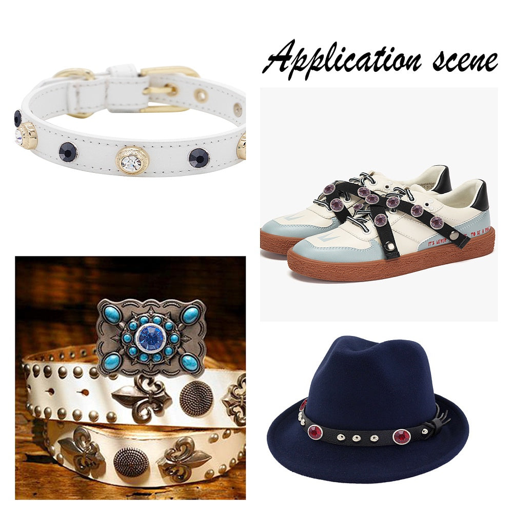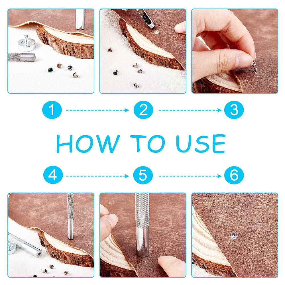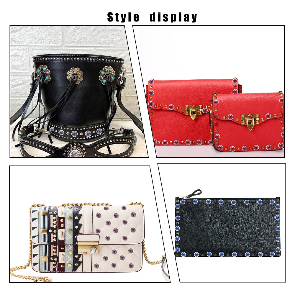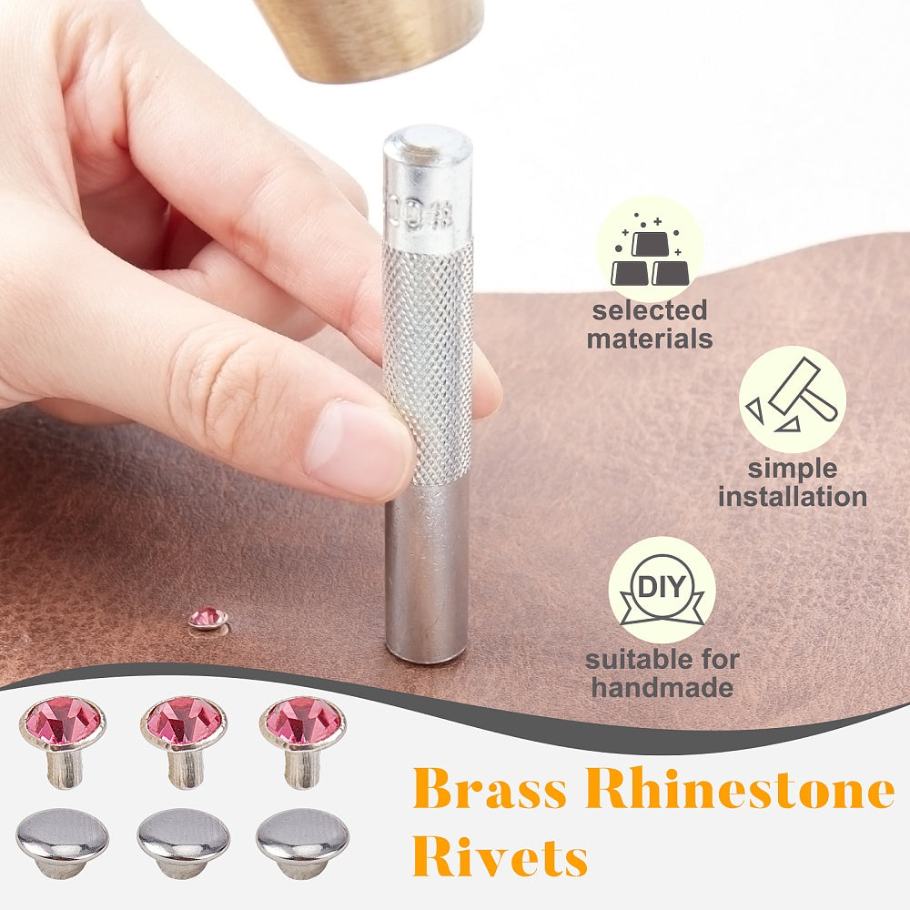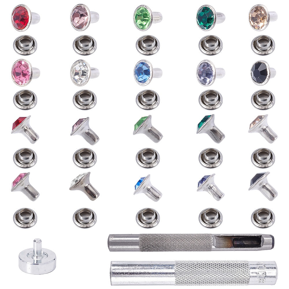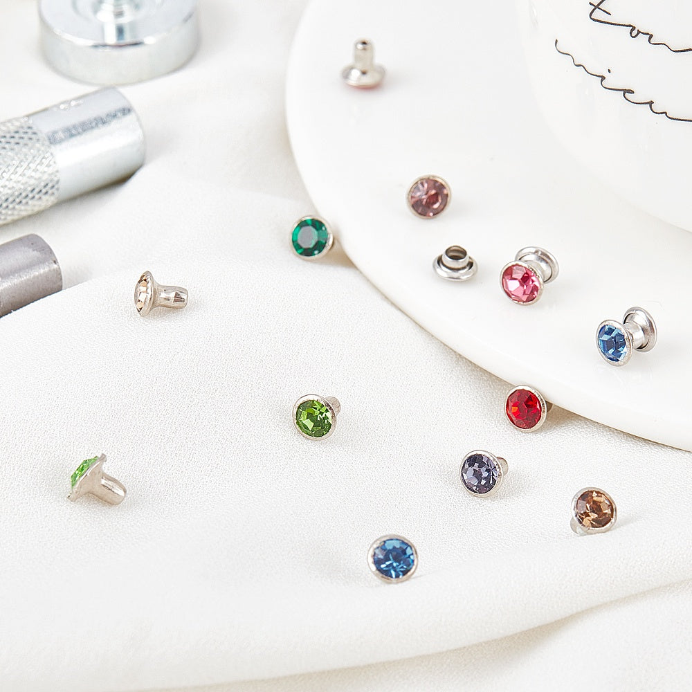 Enhance your leather craft projects with this set of mixed rhinestone rivets cap and studs. The flat round steel eyelets add a touch of elegance and style to your creations.