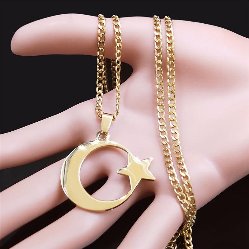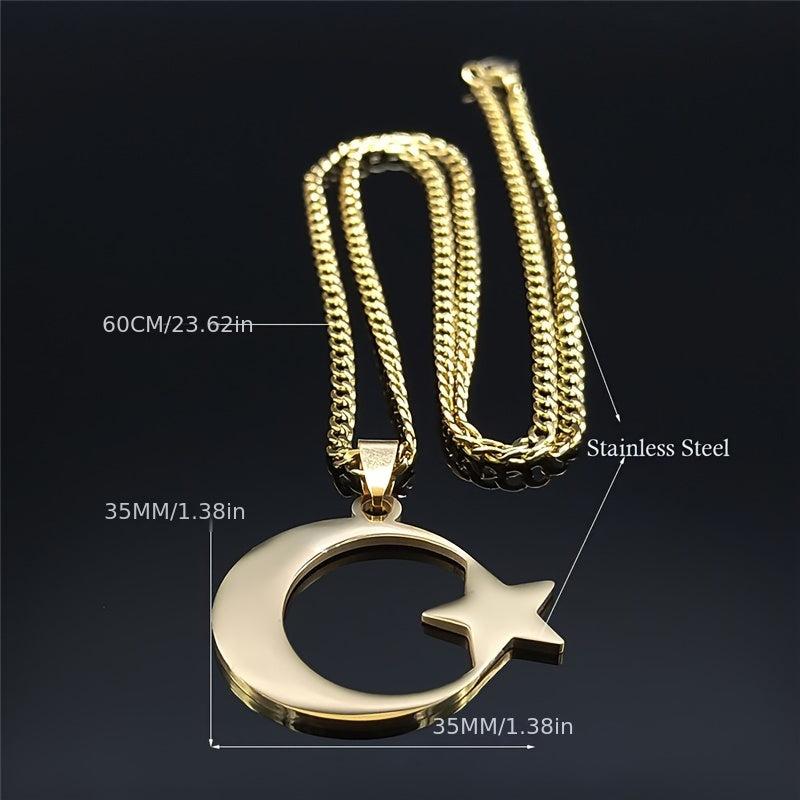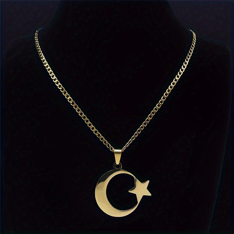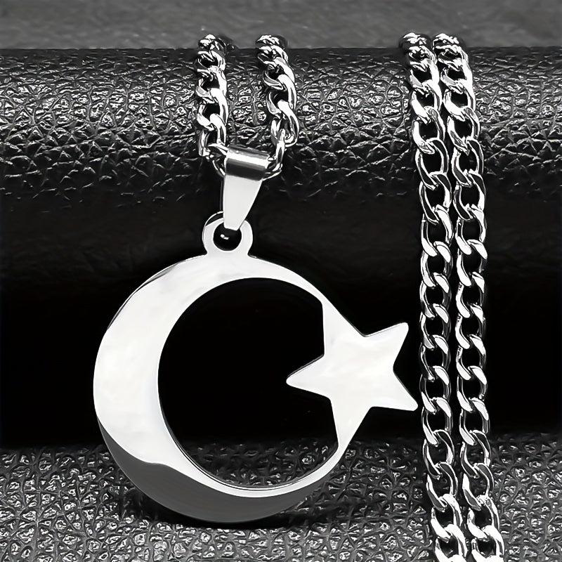 This stainless steel chain necklace featuring moon and star design is perfect for daily wear or as a thoughtful Ramadan gift. It is adjustable to suit your desired length and adds a touch of elegance to any outfit.