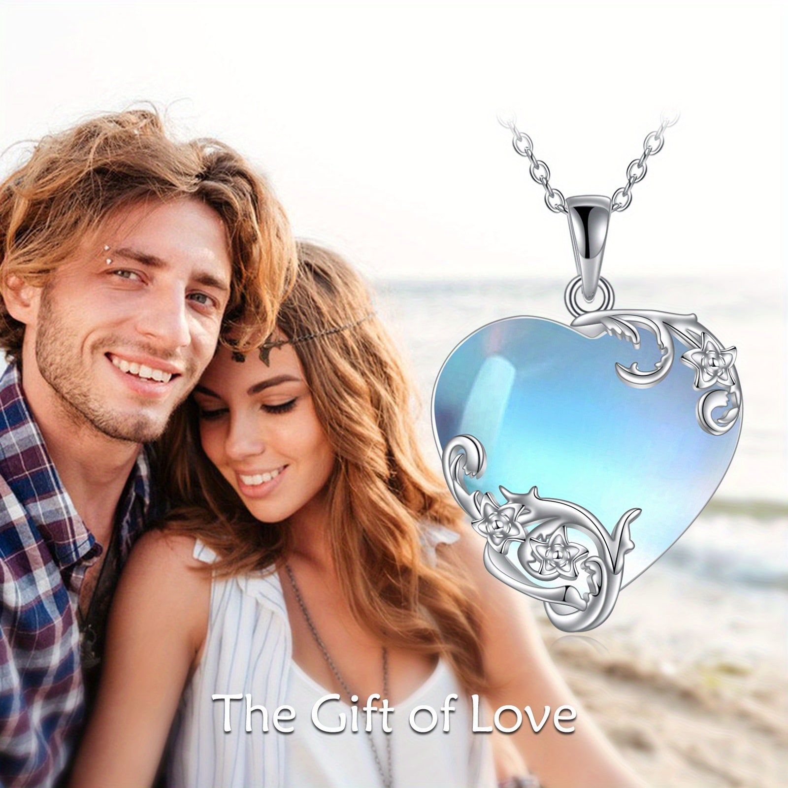 This elegant necklace features a moonstone heart pendant in sterling silver, with a Nordic floral design. Perfect for women and girls who appreciate unique jewellery.