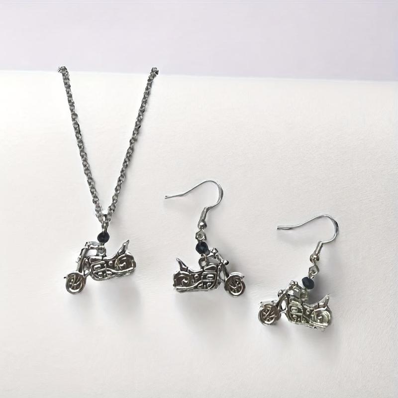 Elevate your style with this stunning motorcycle jewelry set featuring crystals, a stainless steel chain, and sterling silver ear studs. Perfect for any biker enthusiast.