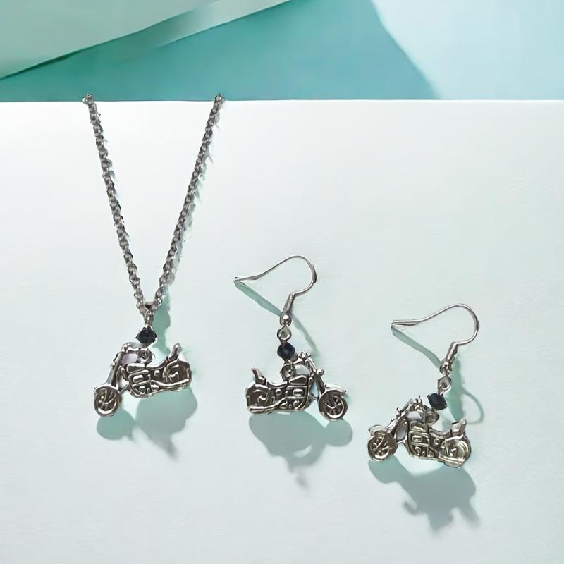 • Motorcycle jewelry set with crystals and stainless steel chain