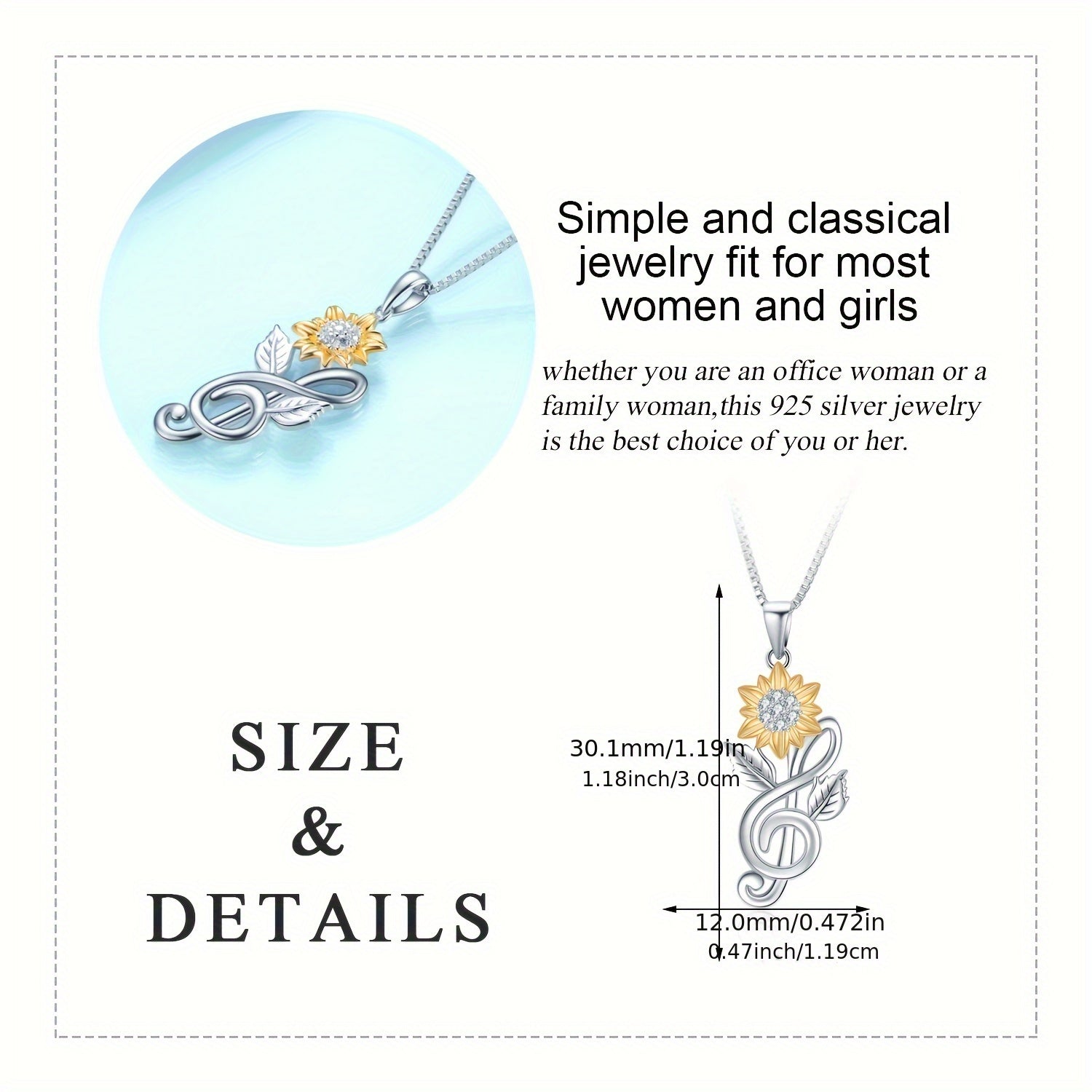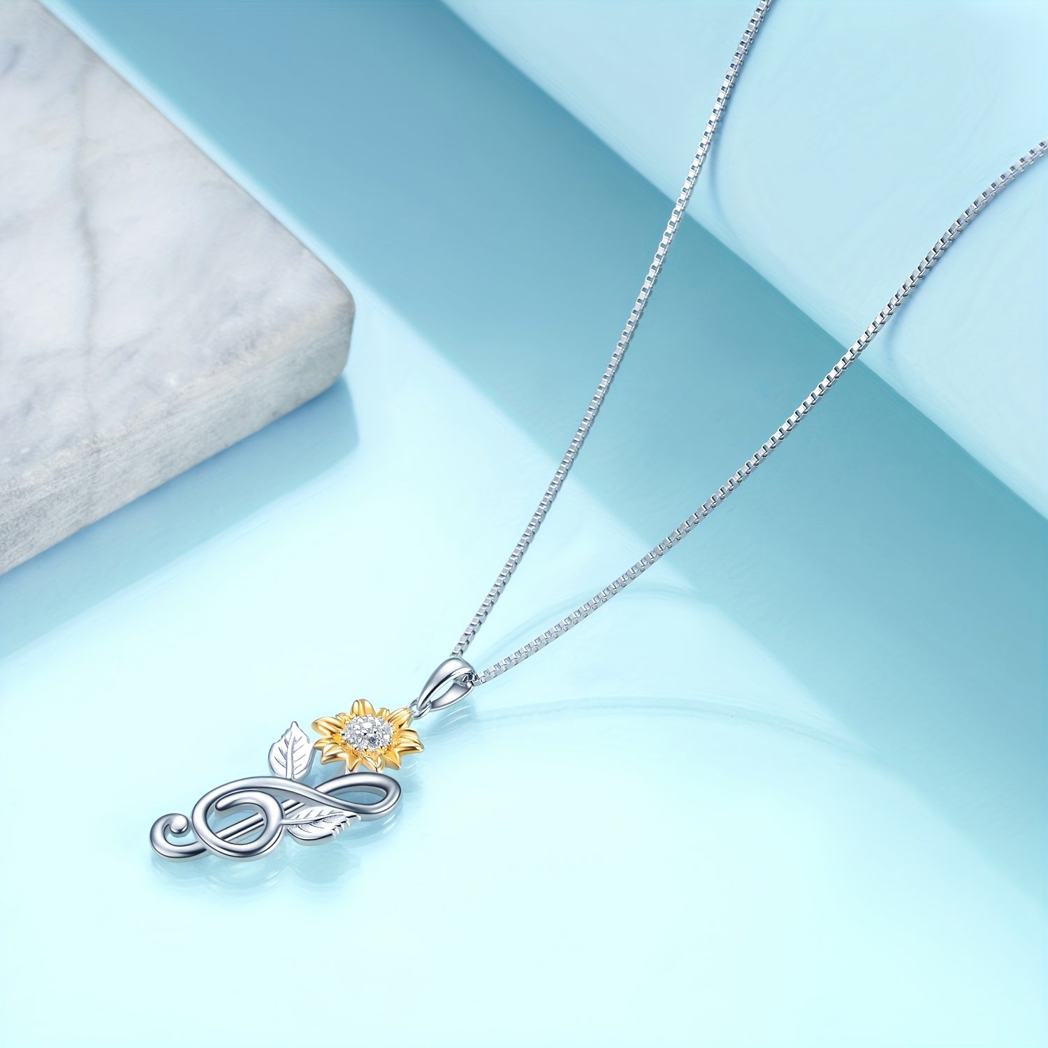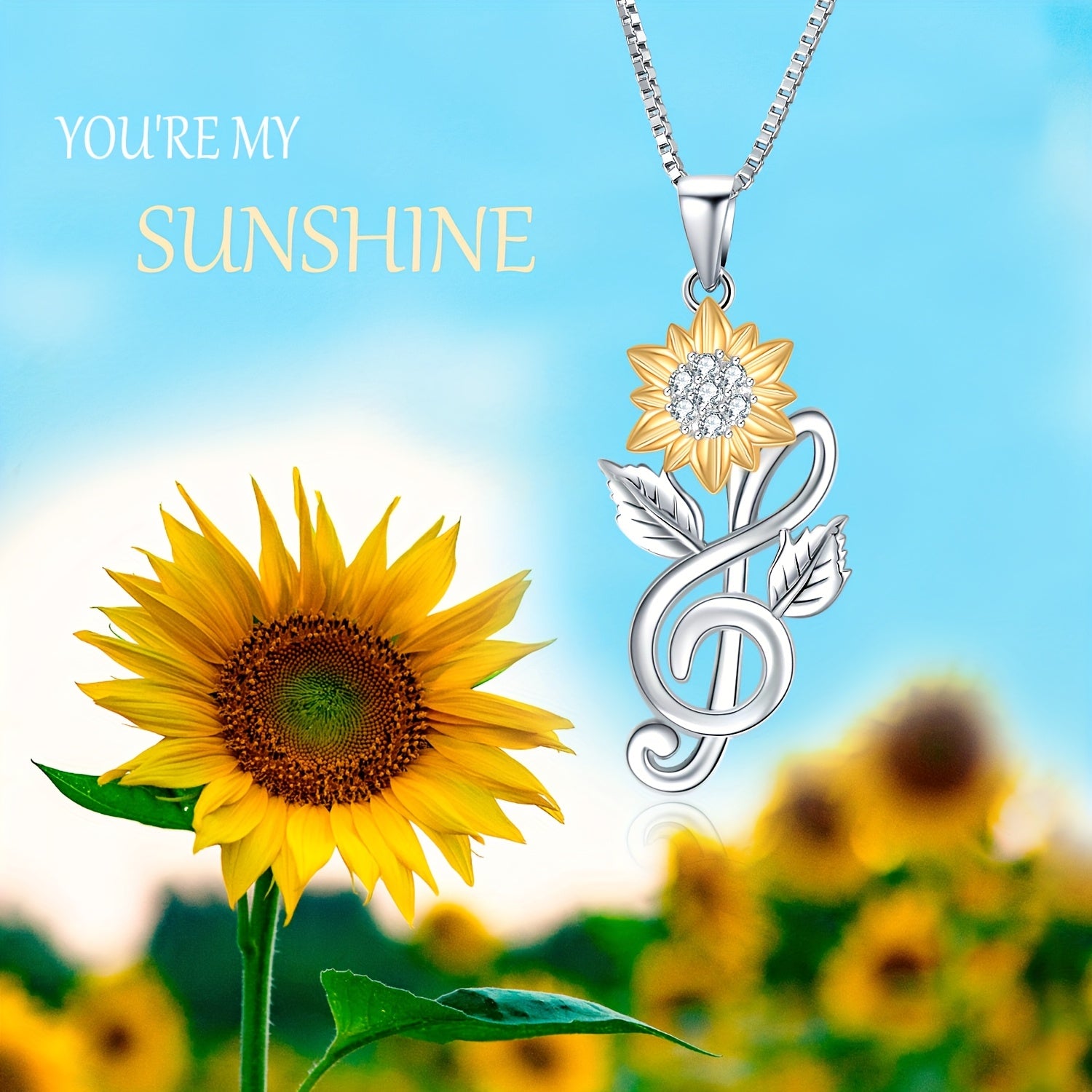 This sunflower necklace features a charming music note design, perfect for women or girlfriends. Crafted in sterling silver with a golden plated finish.