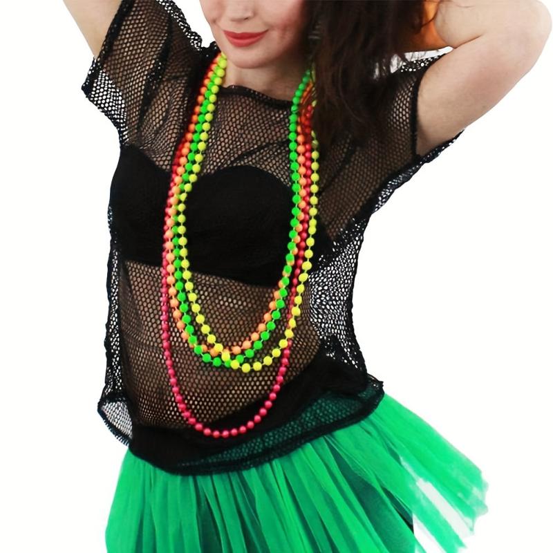 Elevate your style with this vintage inspired neon beaded necklace. Made of plastic chain with round pearls, this accessory is perfect for all seasons and everyday wear.