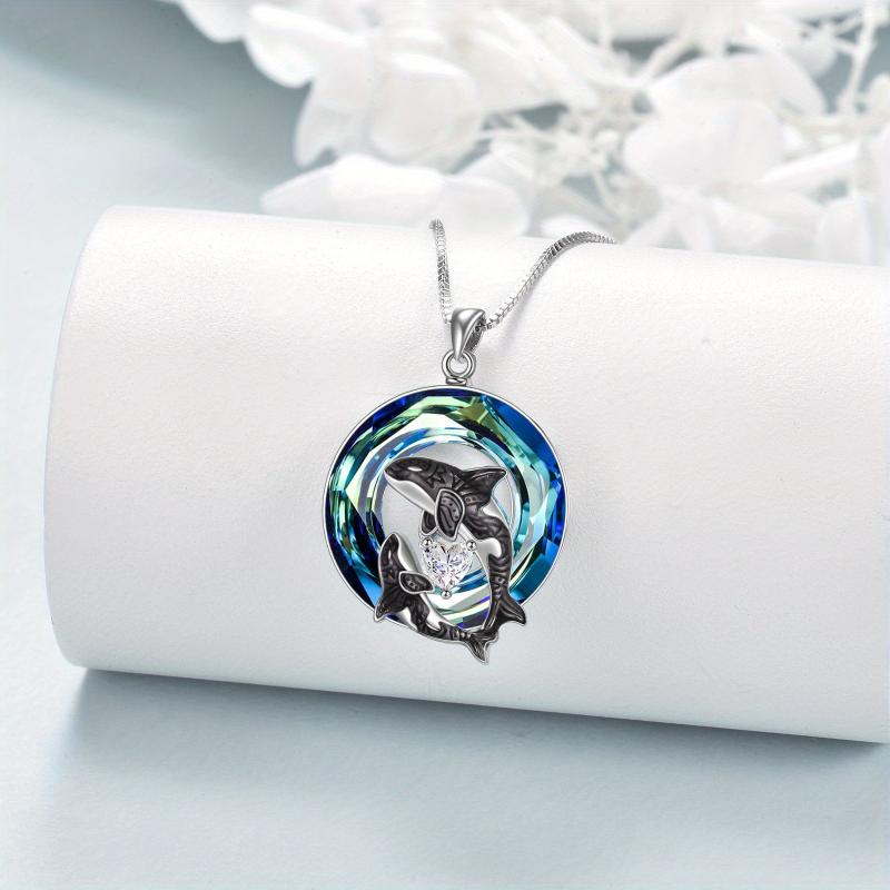 This sterling silver pendant necklace features a detailed killer whale design, making it a perfect birthday jewelry gift for ocean animal lovers.