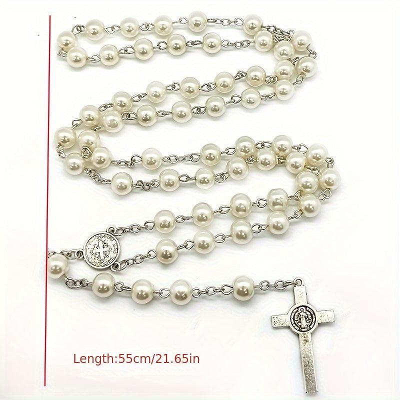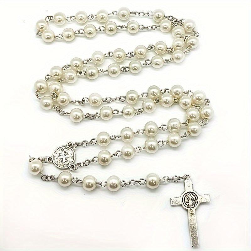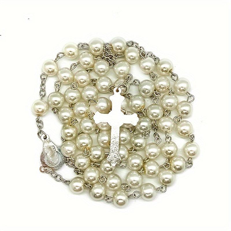 This hand-bent needle rosary necklace features a beautiful ocean-themed design. It is a unique and elegant accessory that can be worn as a sweater chain.