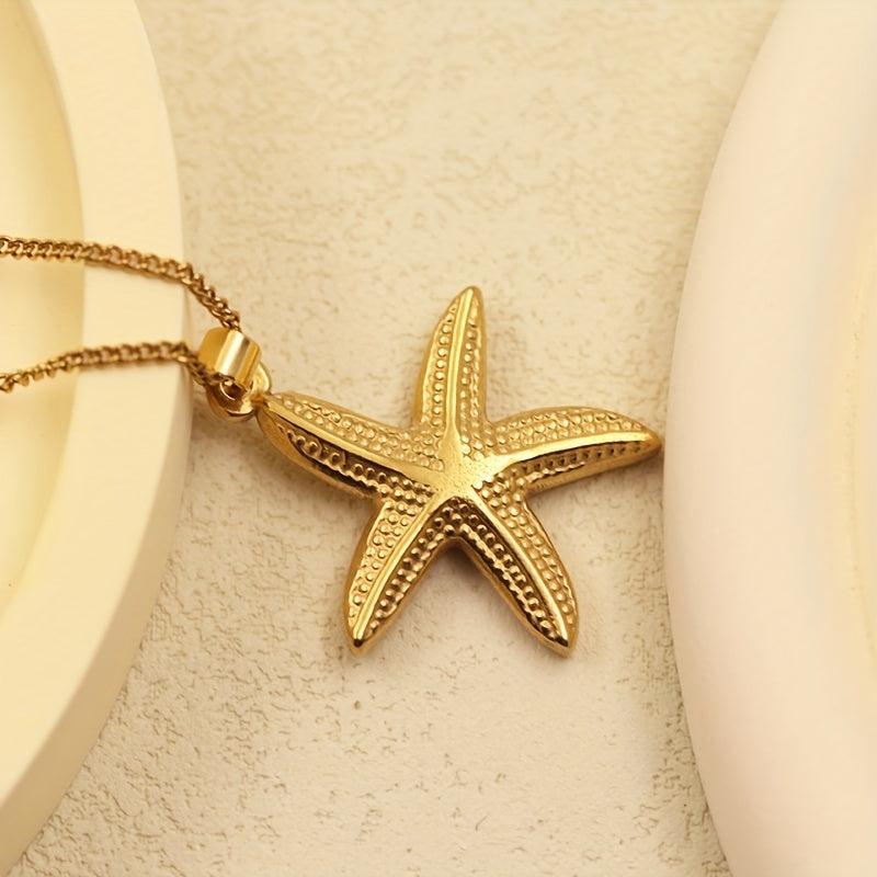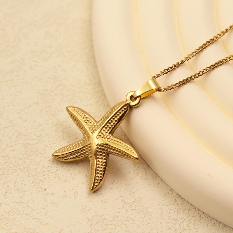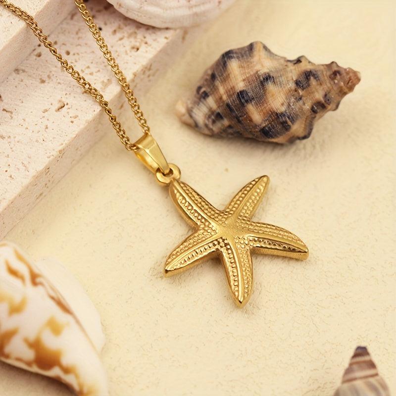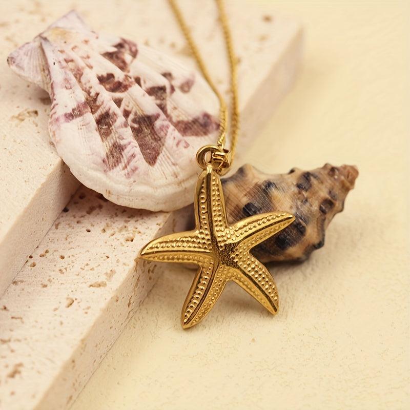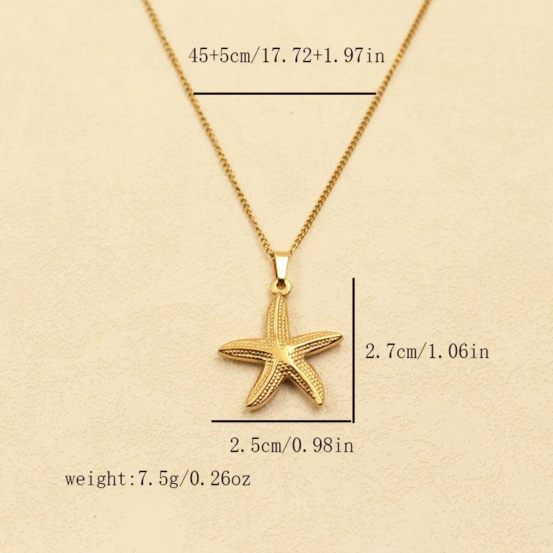 Embrace summer vibes with this stunning starfish pendant necklace. Crafted from high-quality stainless steel and plated with 14K gold, this retro-inspired piece is perfect for beach vacations and seaside adventures.