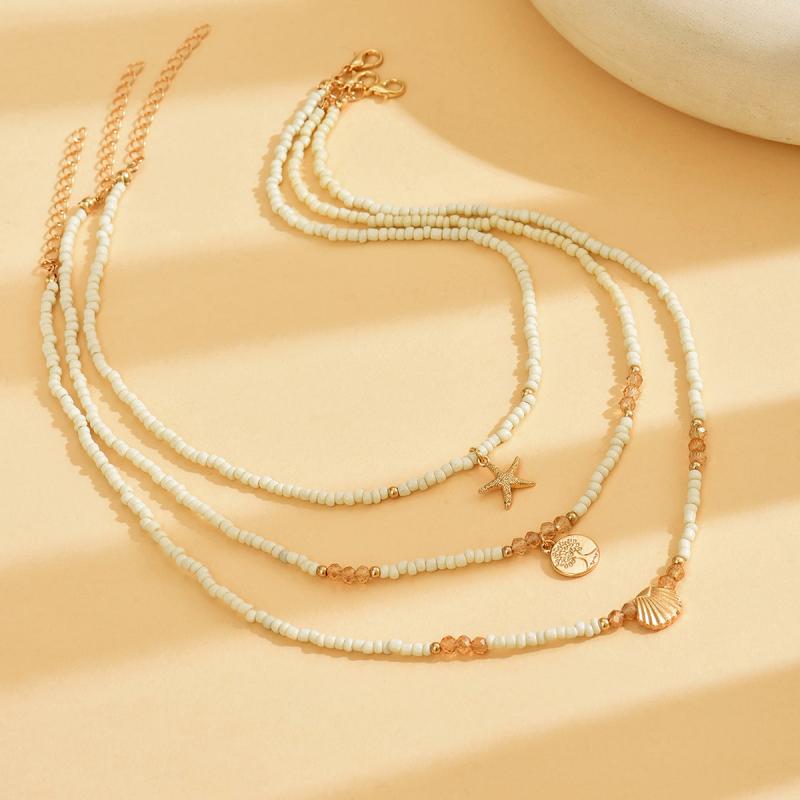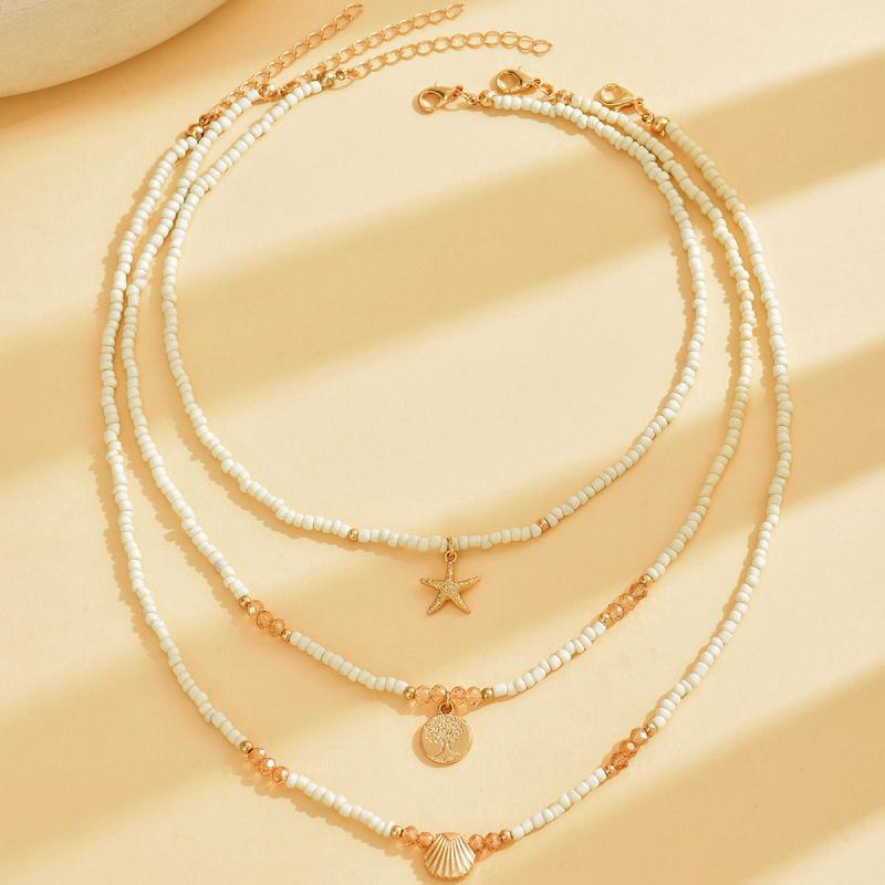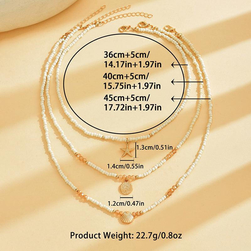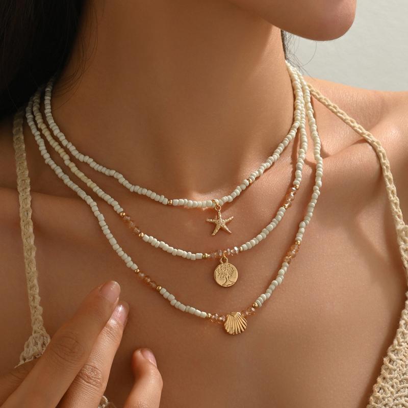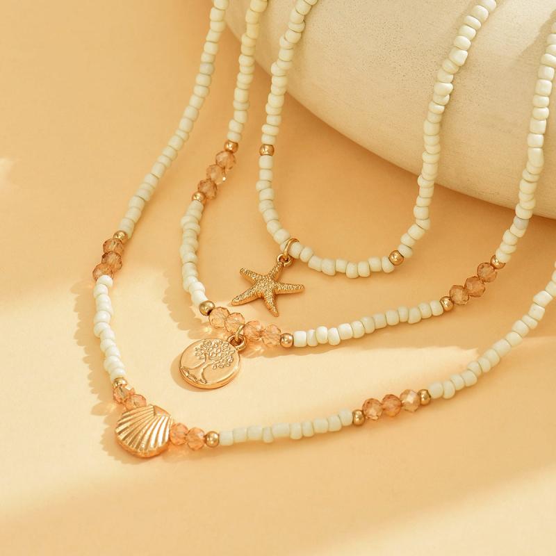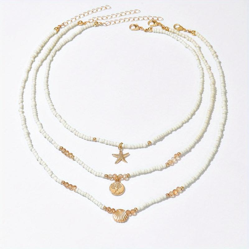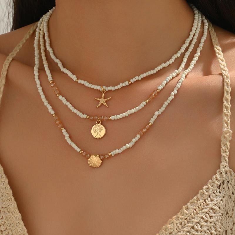 Add a touch of the ocean to your outfit with this beautiful choker necklace featuring shell and starfish charms. The beaded braided design adds a bohemian flair, while the tree of life pendant brings a spiritual element.