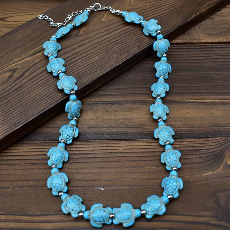 This choker necklace is perfect for a beach vacation with its ocean wave and sea turtle design. Add a bohemian touch to your summer outfit.