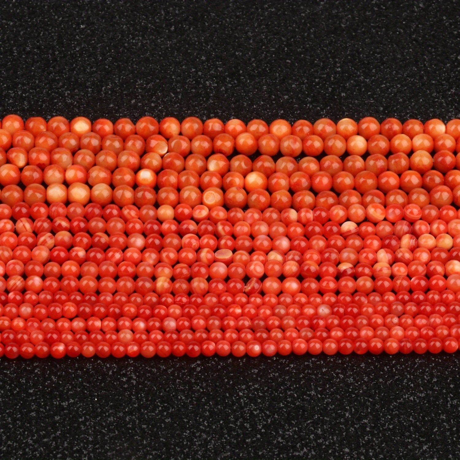 Create vibrant jewelry with these natural orange red freshwater shell beads. They have a glossy finish and smooth round shape, perfect for bracelets, necklaces, and earrings.