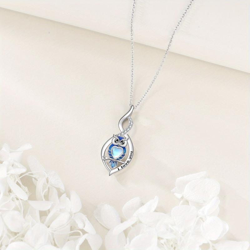 • 925 sterling silver owl necklace with synthetic moonstone pendant