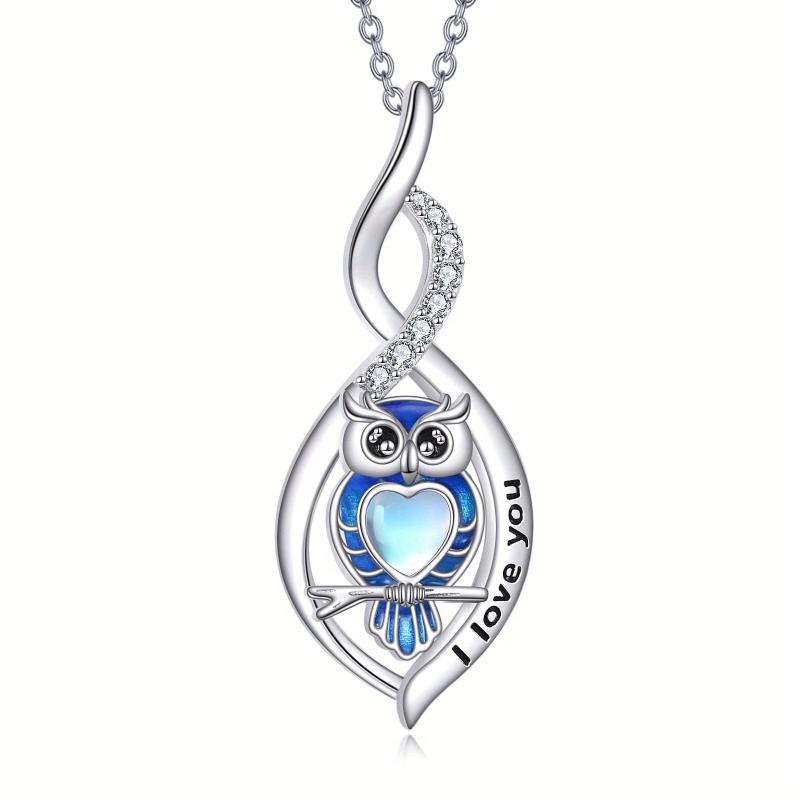 This owl necklace is crafted from 925 sterling silver and features a synthetic moonstone infinity pendant. It makes a thoughtful gift for women, especially moms.
