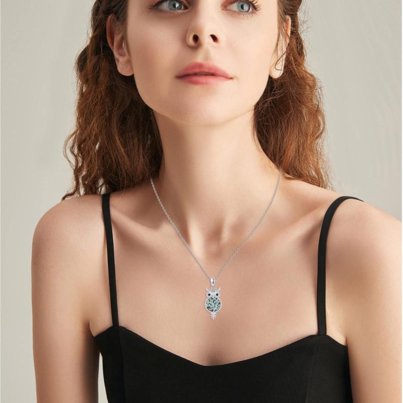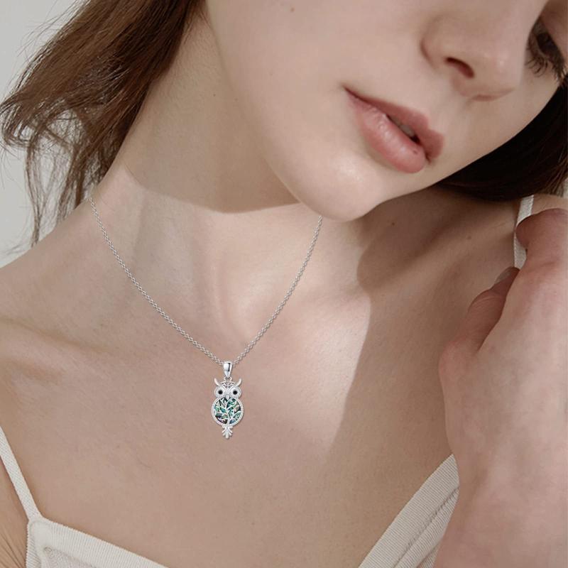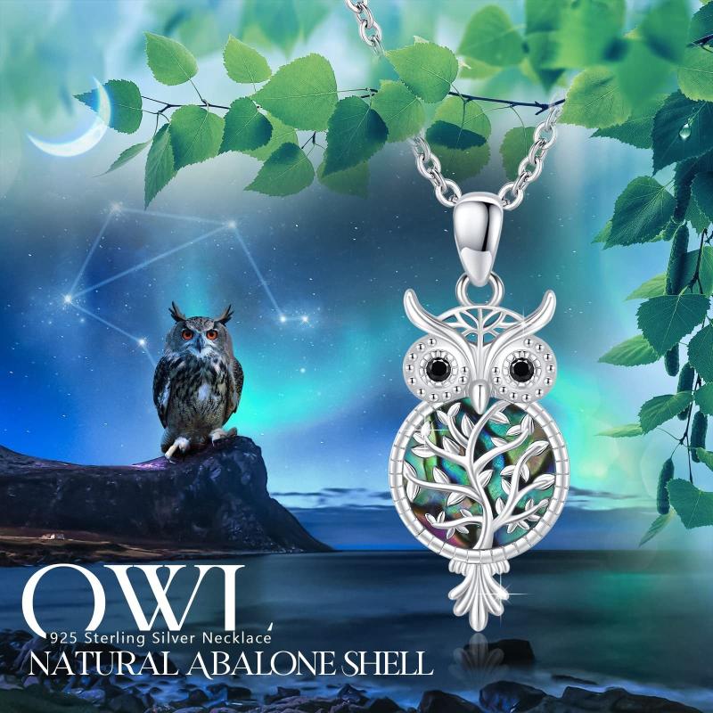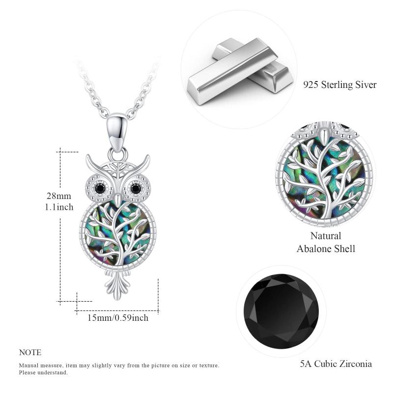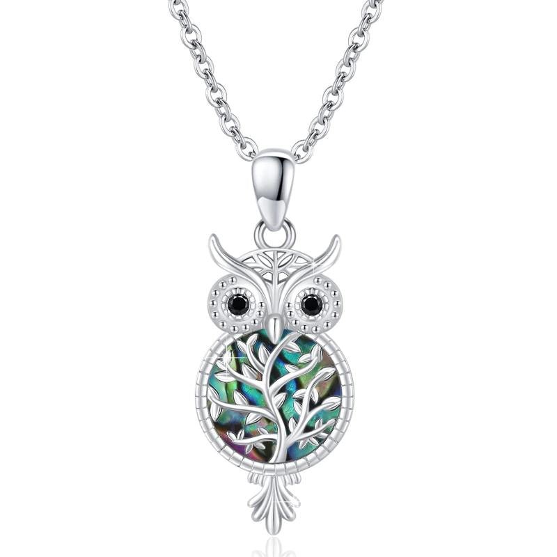 Owl Necklace 925 Sterling Silver Tree of Life Abalone Shell Necklace